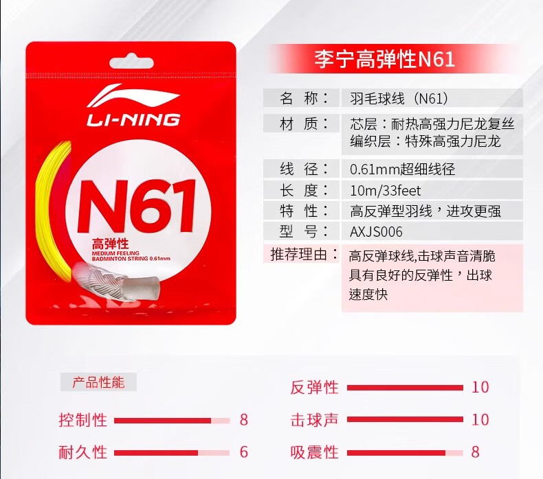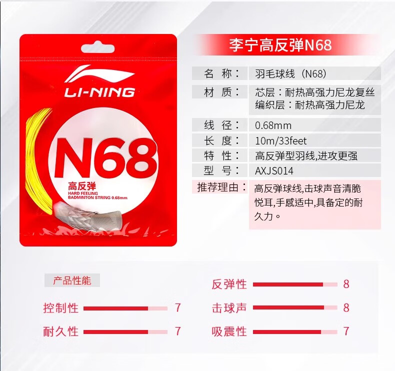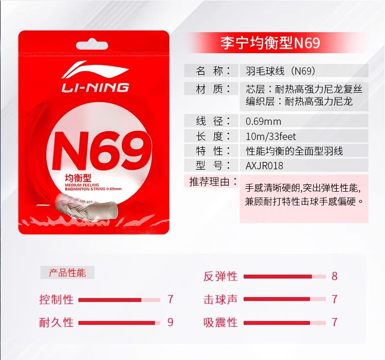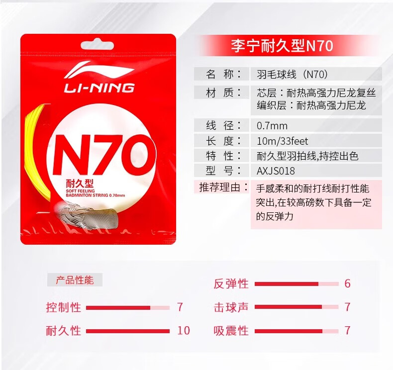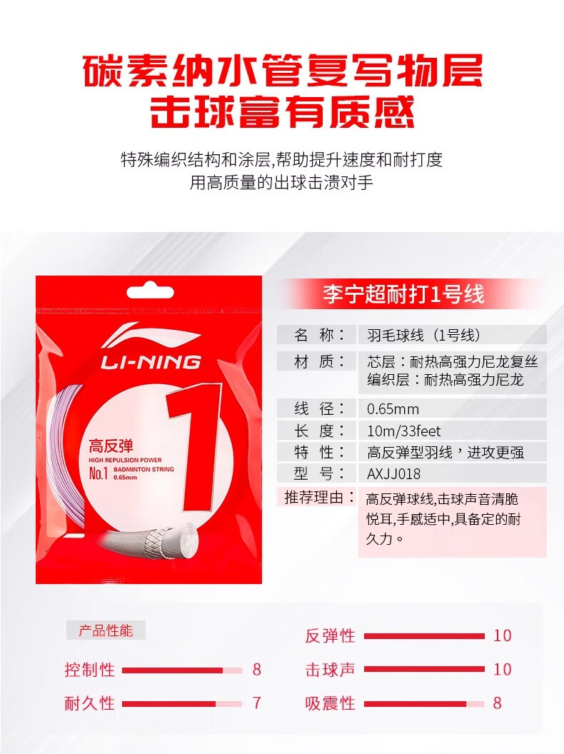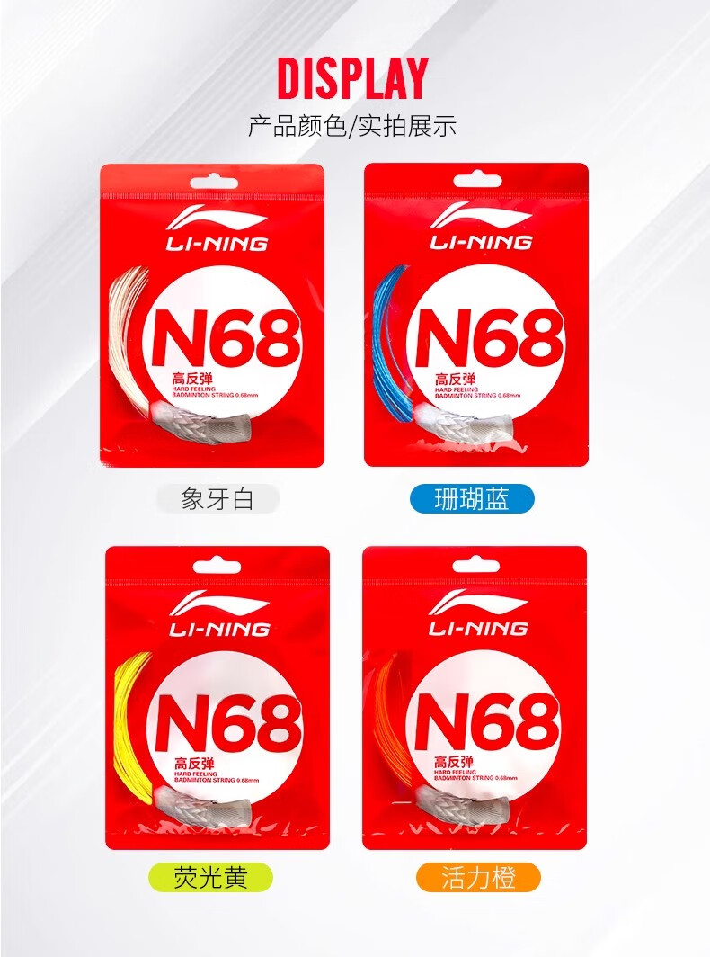 Li Ning corde de raquette de badminton n ° 1 N65L67 diamètre de fil résistant haute élasticité bâton professionnel durable type de contrôle chaîne L67Q rose clair violet