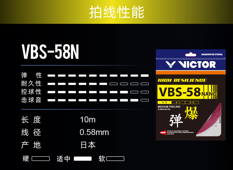 威克多(VICTOR)胜利新款专业羽毛球拍线vbs58羽毛球线vbs66n耐打高弹力网线vbs63 【蜡笔小新】VS-63DE鲜红亮黄