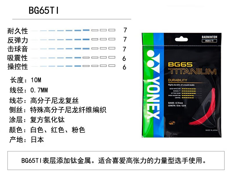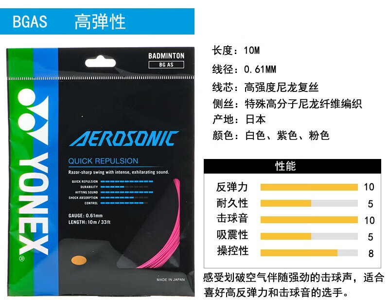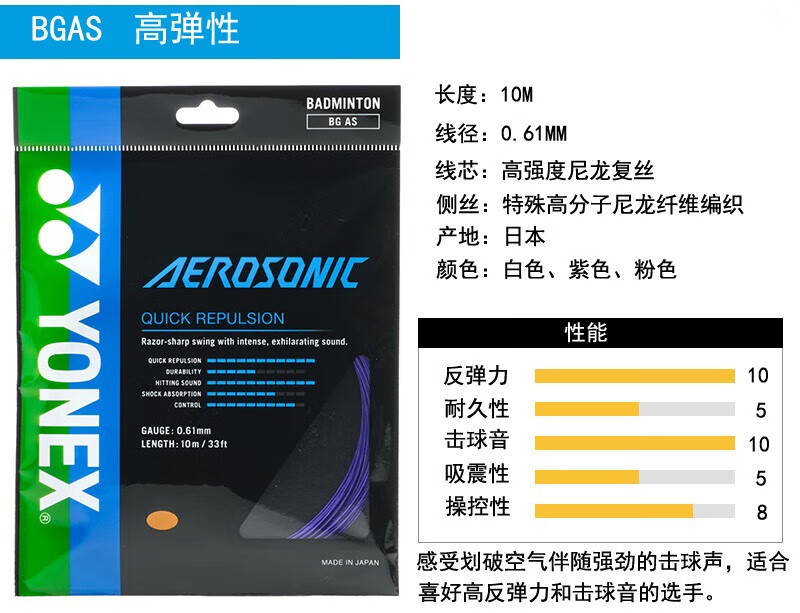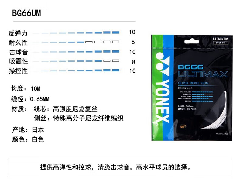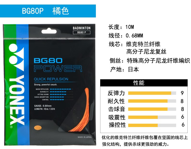 Corde de raquette de badminton professionnelle YONEX corde de contrôle résistante à haute élasticité BG80P type offensif blanc