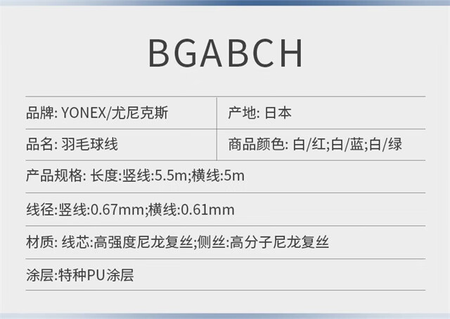 YONEX/Yonex BGABCH racket string badminton string controlled rebound yy white/green
