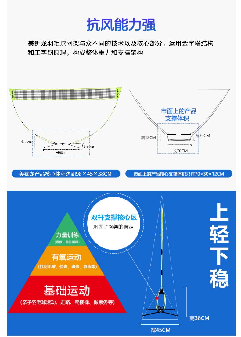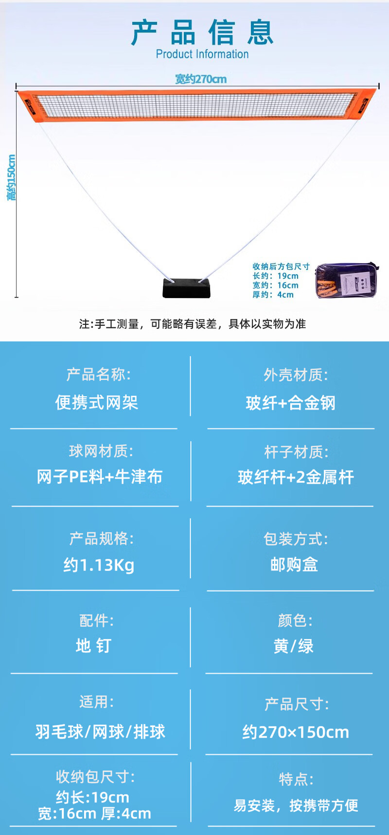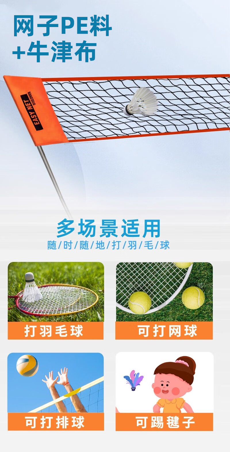 Meishilong Badminton Net Frame + Net Portable Home Indoor and Outdoor Simple Mobile Net Frame Standard Competition Folding Net Post 3m Black Red (Upgraded Model)