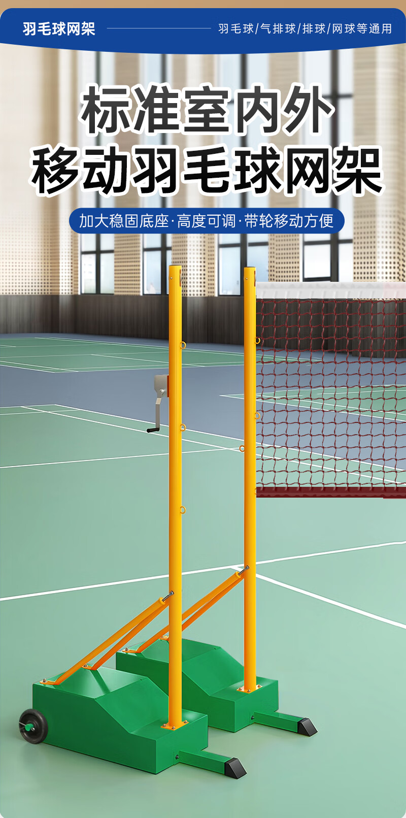 迈高登学校标准羽毛球网架室外多用网柱可移动式网球架多功能气排球架 1.55m 加厚绿【6.1 *1.55m有网】