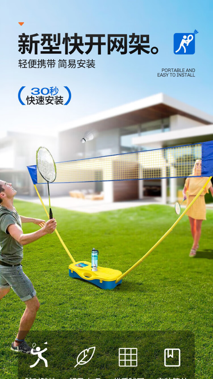 Сетка для бадминтона Портативная стандартная одиночная и парная мобильная площадка для бадминтона 3 м Быстрооткрывающаяся сетка для бадминтона - желтая 3 м