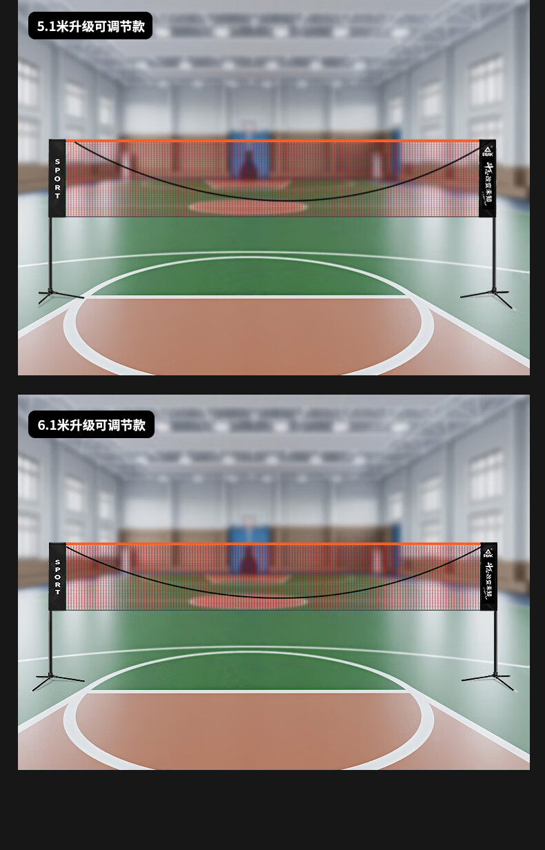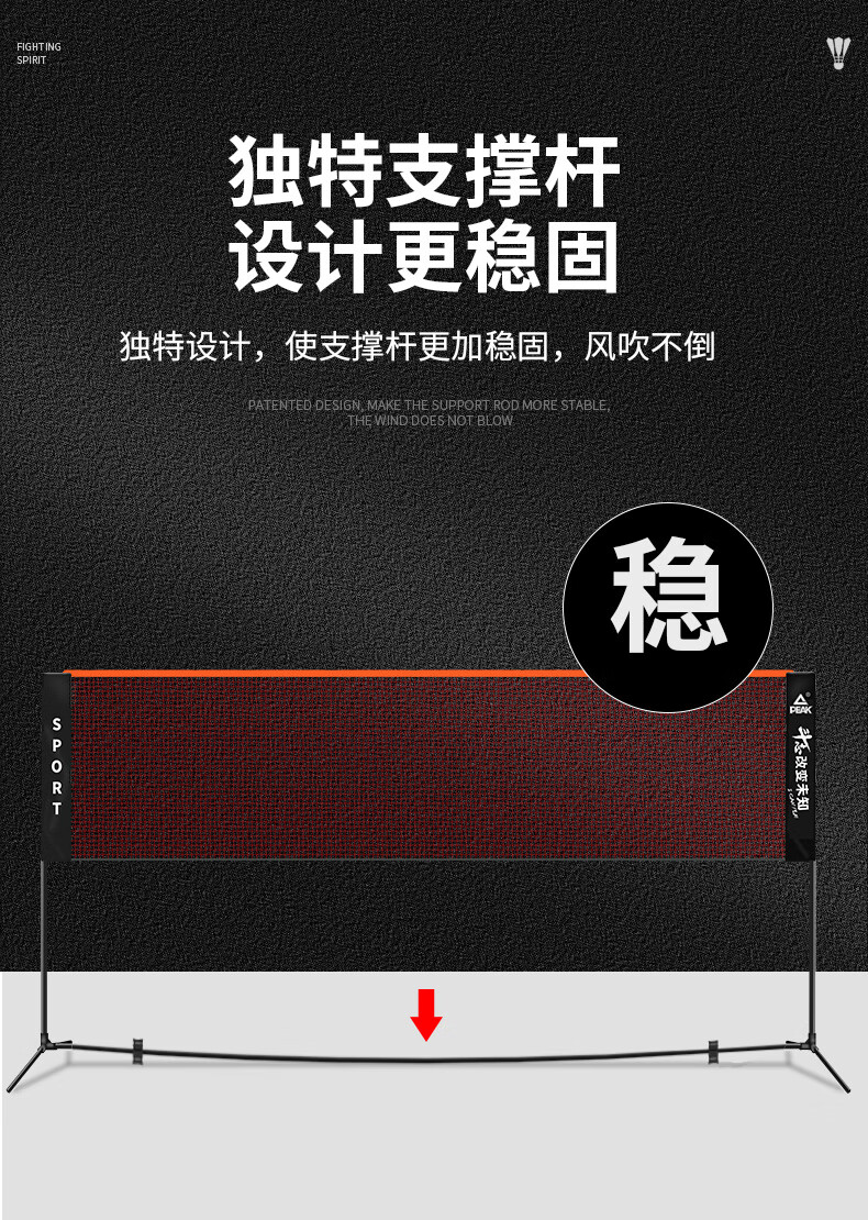 Peak Filet de badminton Cadre portable extérieur intérieur maison simple bloc central compétition filet de badminton filet standard 5,1 m hauteur réglable