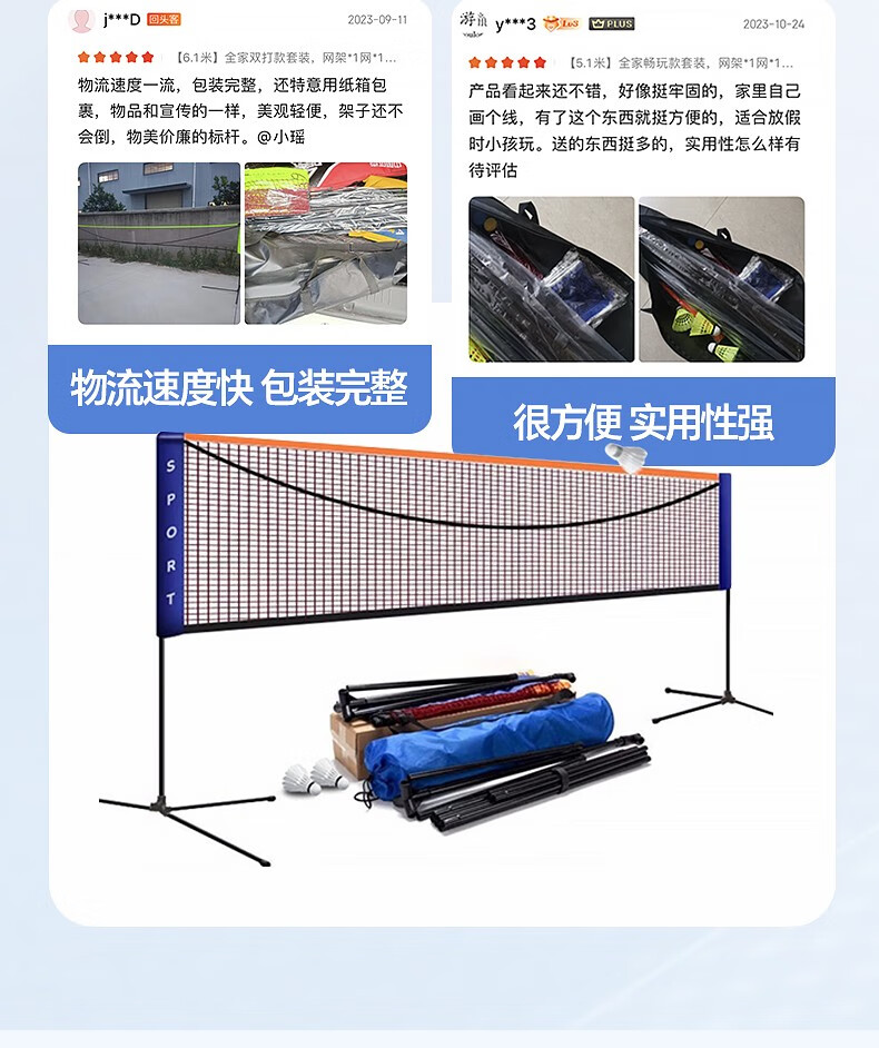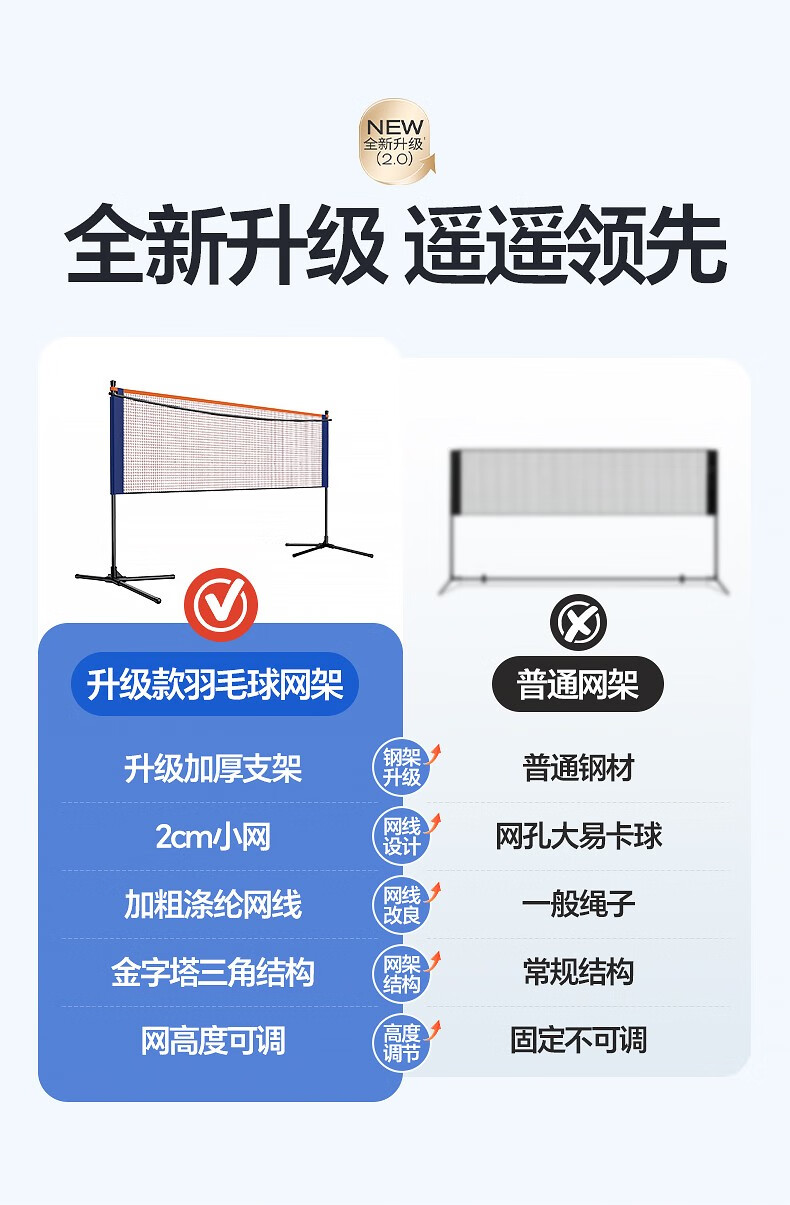 梦多福【八仓次日达】羽毛球网架+网便携式折叠室内户外场地羽毛球网架 5.1m 全家畅玩款套装 网架*1网*1羽毛球*3手胶*2护掌*2