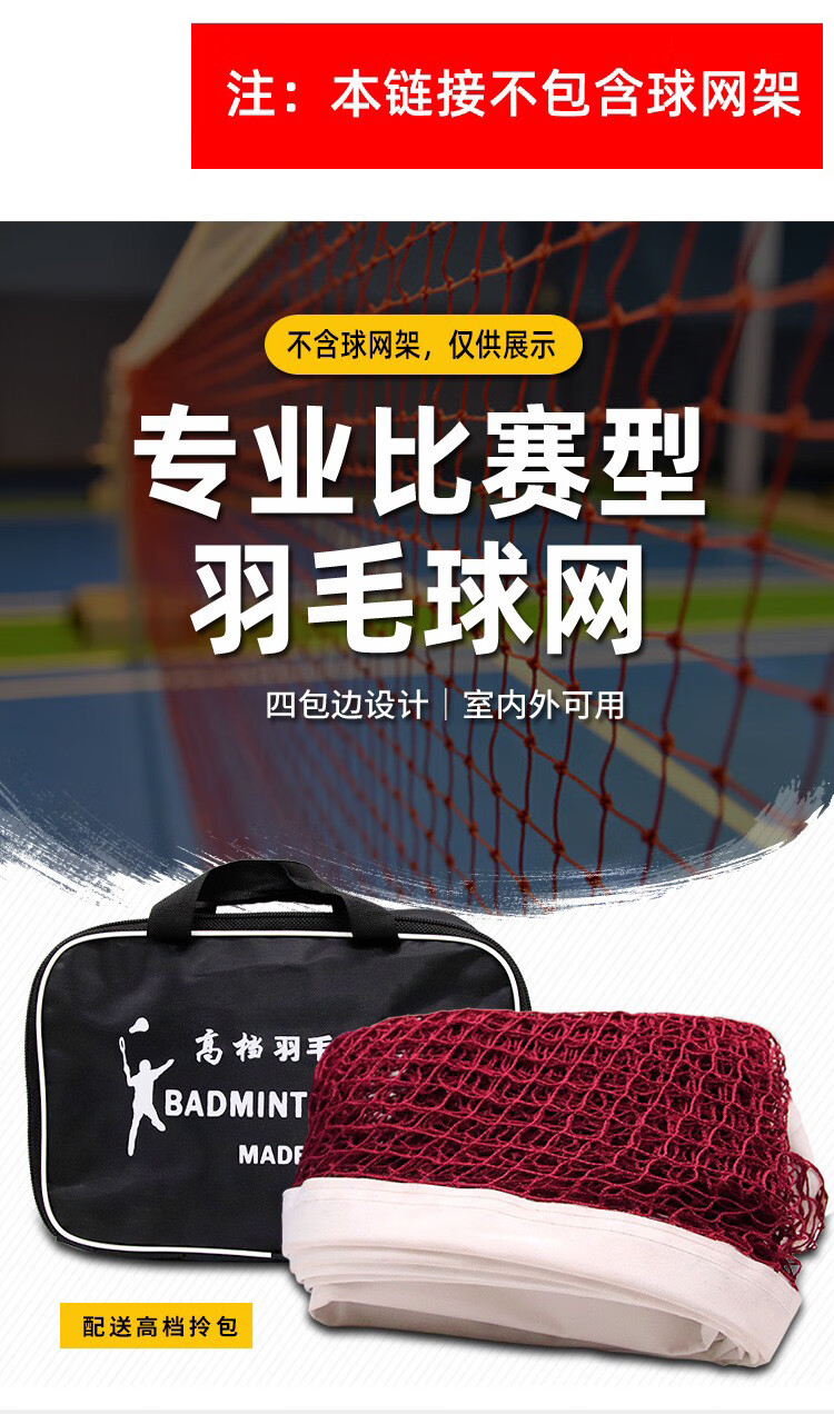 欧尚客羽毛球网便携式标准网网眼四包边专业型小网孔钢丝绳耐用羽毛球网 专业型四边