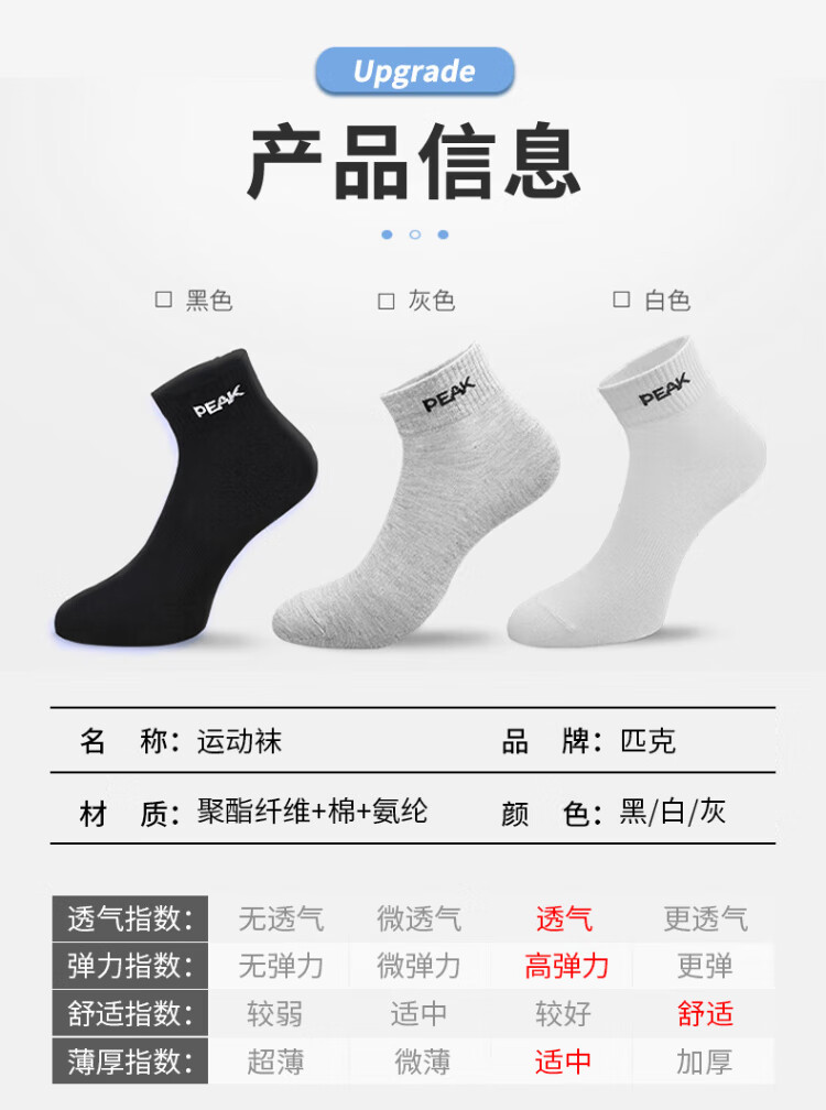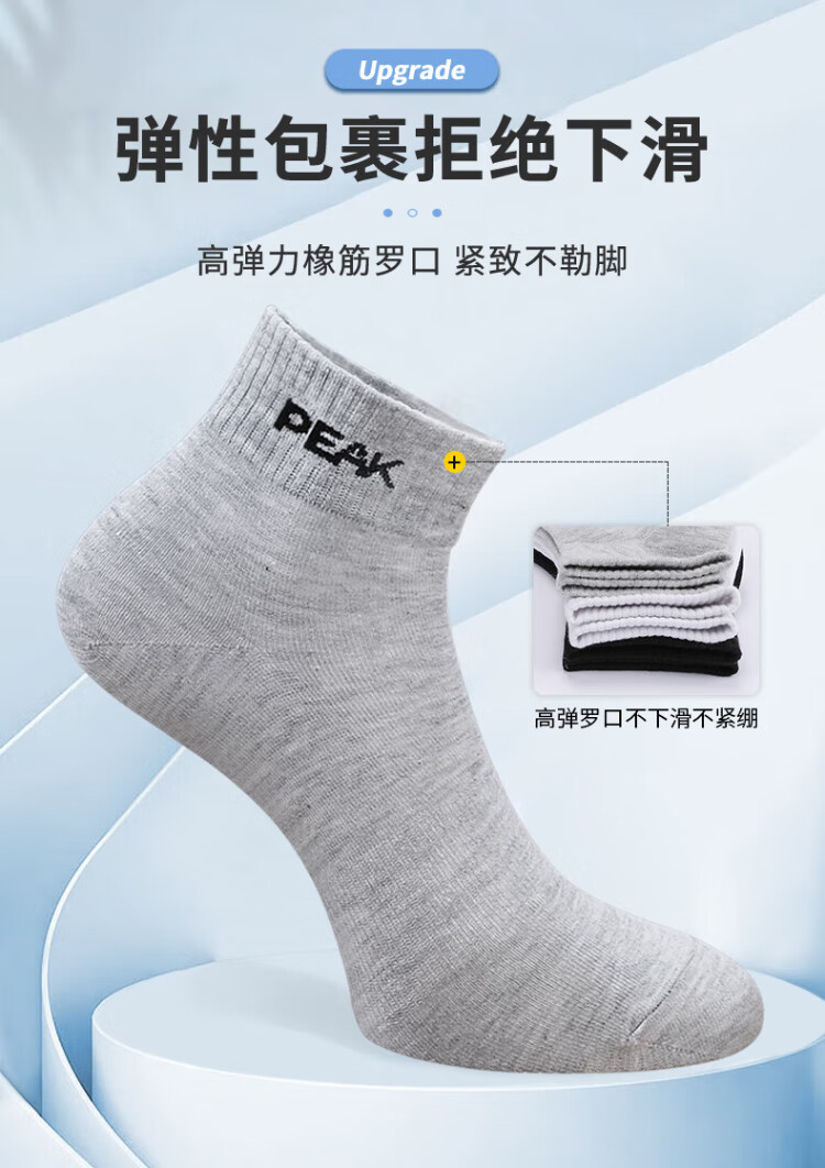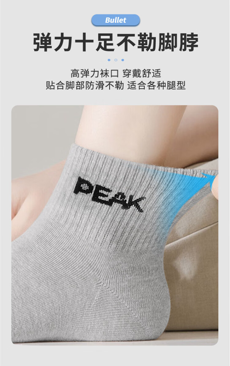 Peak sports socks for men, sweat-absorbent and anti-falling, badminton socks, running basketball, breathable short socks, 3 pairs, one size fits all, black and white