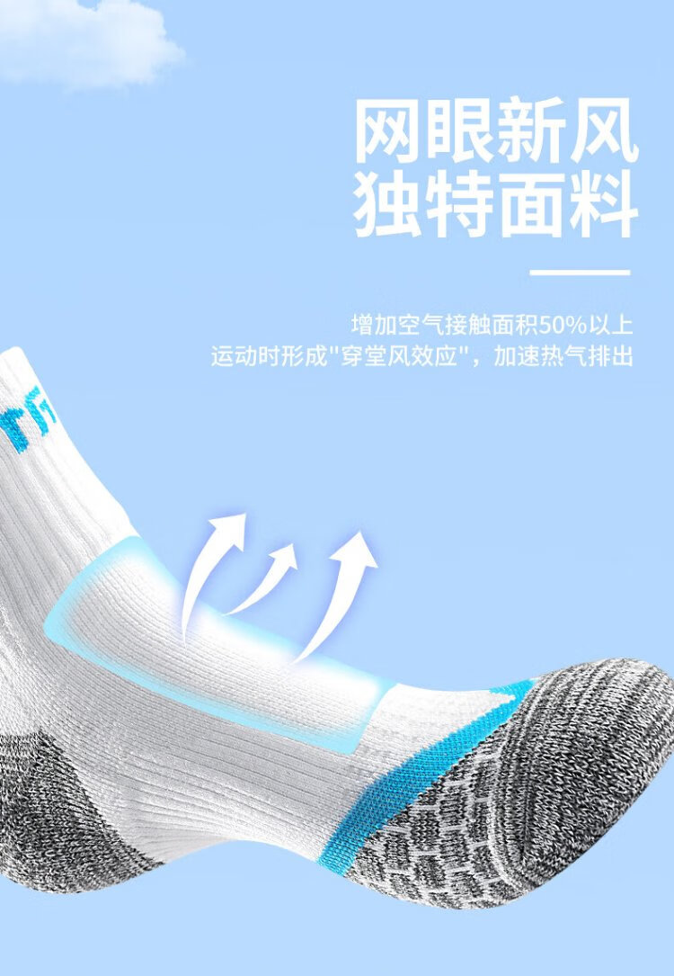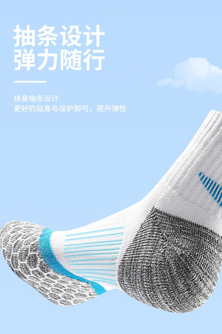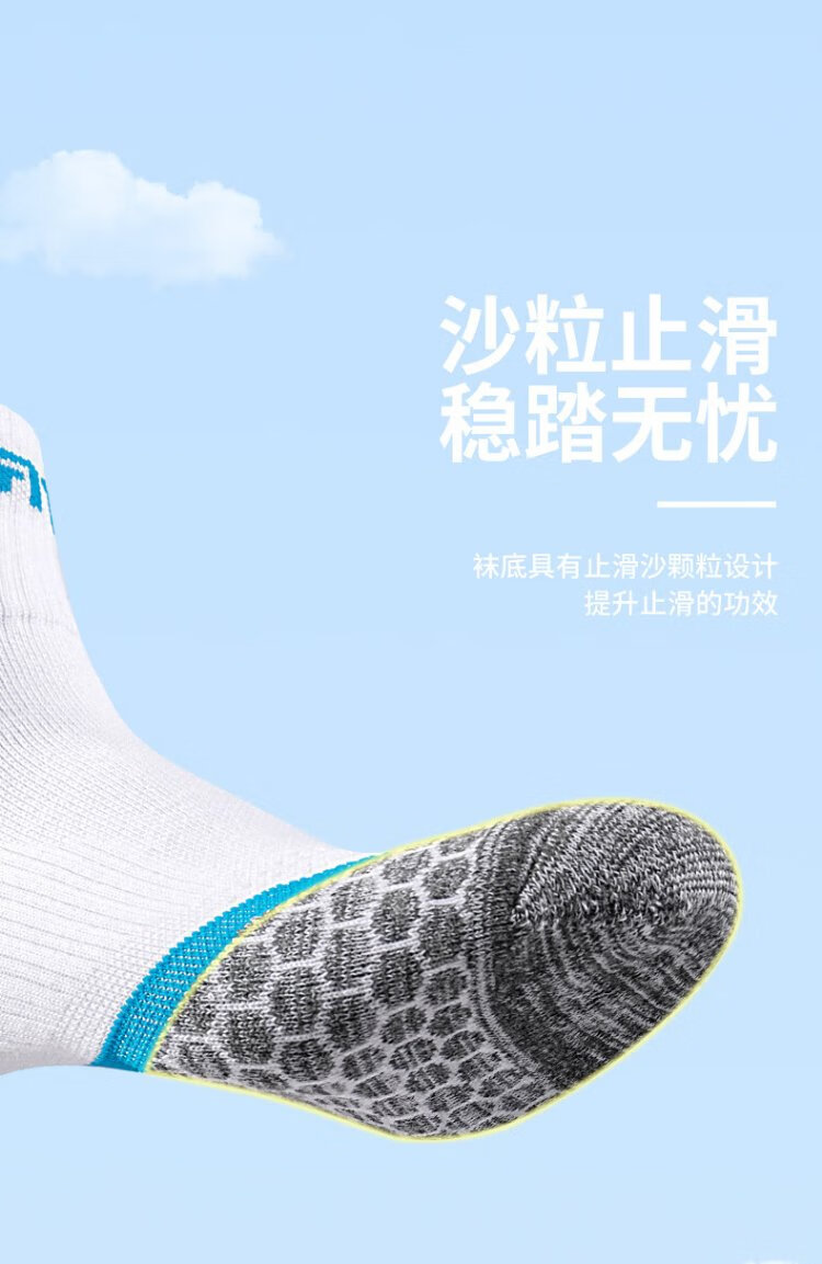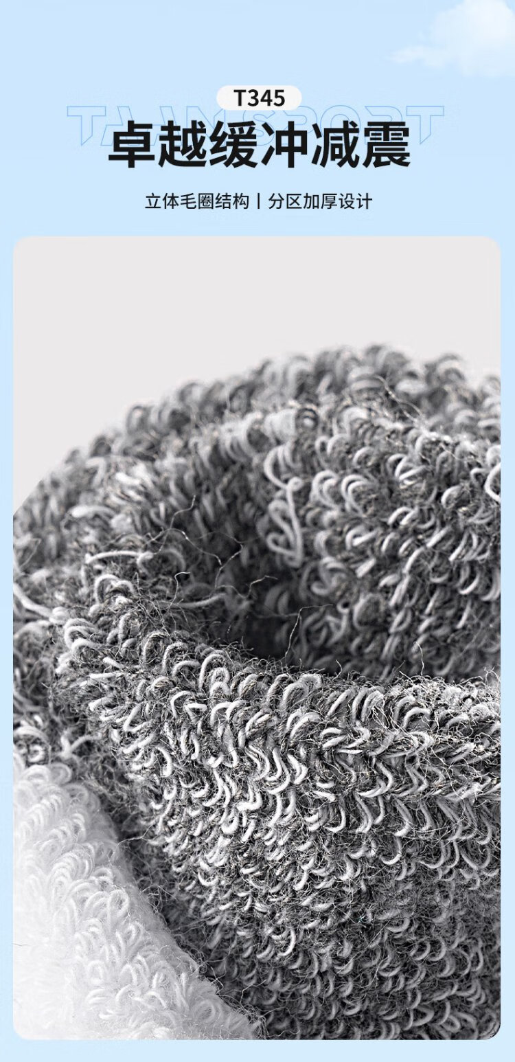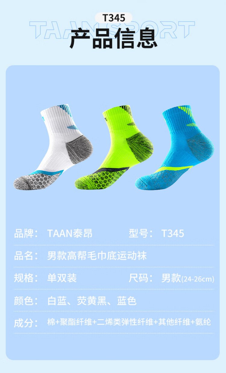 TAAN泰昂羽毛球袜运动袜加厚毛巾底高筒男袜T345白蓝3双装