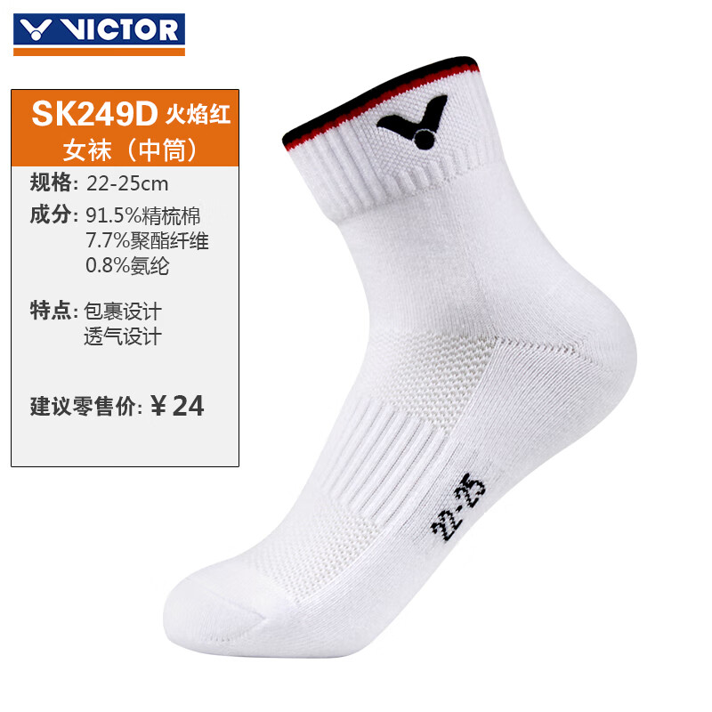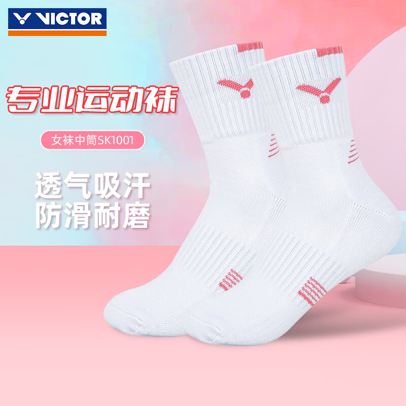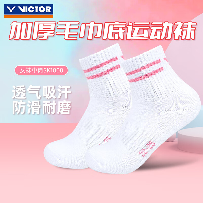 VICTOR Victory Chaussettes de badminton Chaussettes de sport épaisses pour femmes avec bas de serviette absorbant la transpiration, respirantes, antidérapantes et résistantes à l'usure SK290 SK290-A Blanc Taille unique