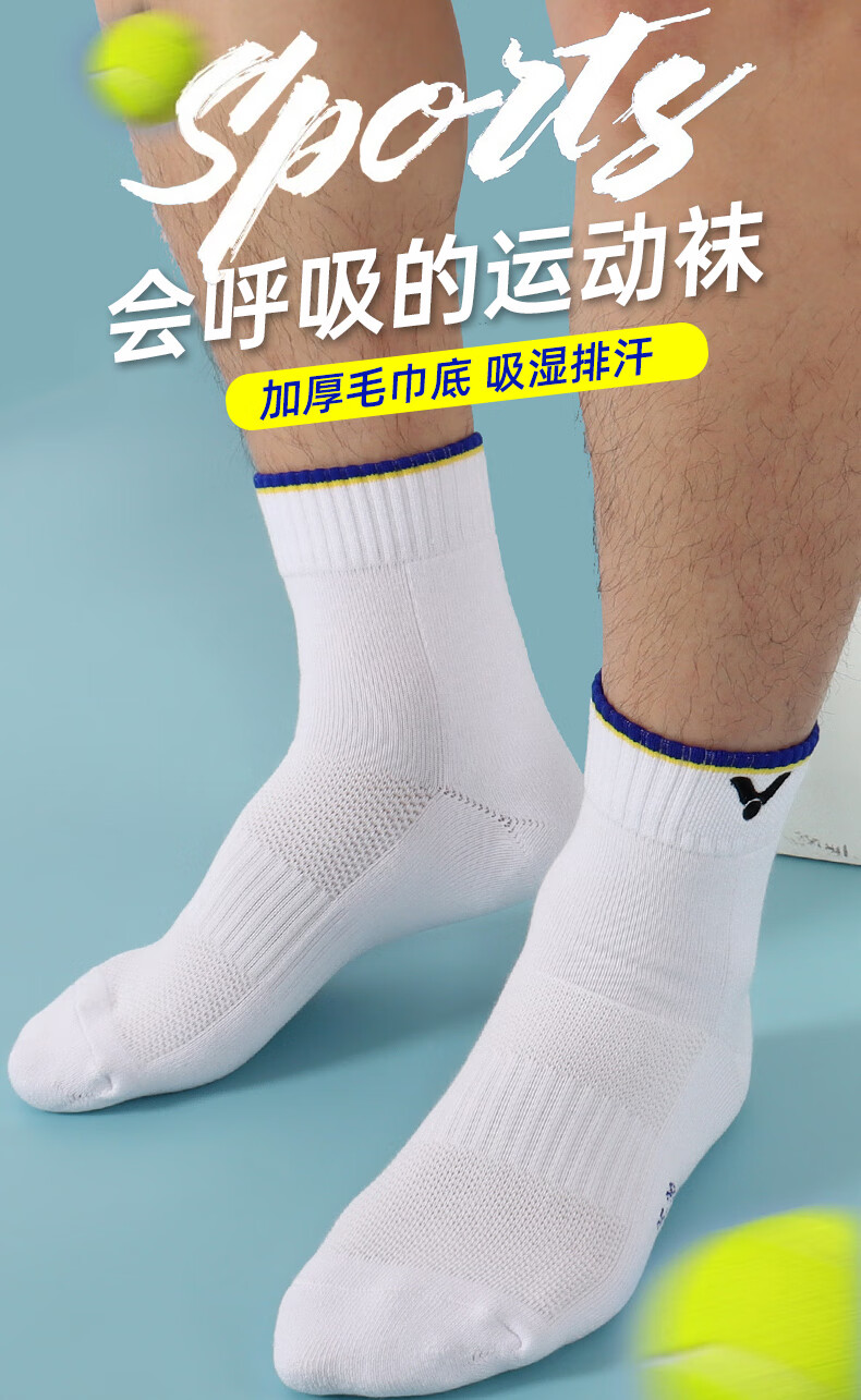 VICTOR chaussettes de badminton bas de serviette épaissi pour hommes chaussettes de sport professionnelles mi-longues absorbant la transpiration, respirantes, confortables et antidérapantes SK-149 SK149F/bleu nautique Taille unique 25-28 cm