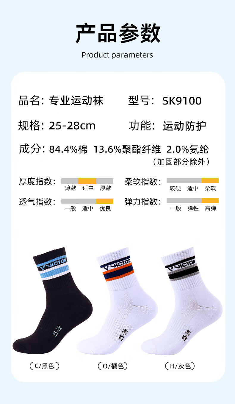 威克多(VICTOR)胜利男女羽毛球袜加厚毛巾底中筒运动袜子透气吸汗防滑耐磨SK9100 SK9100/C黑色 均码