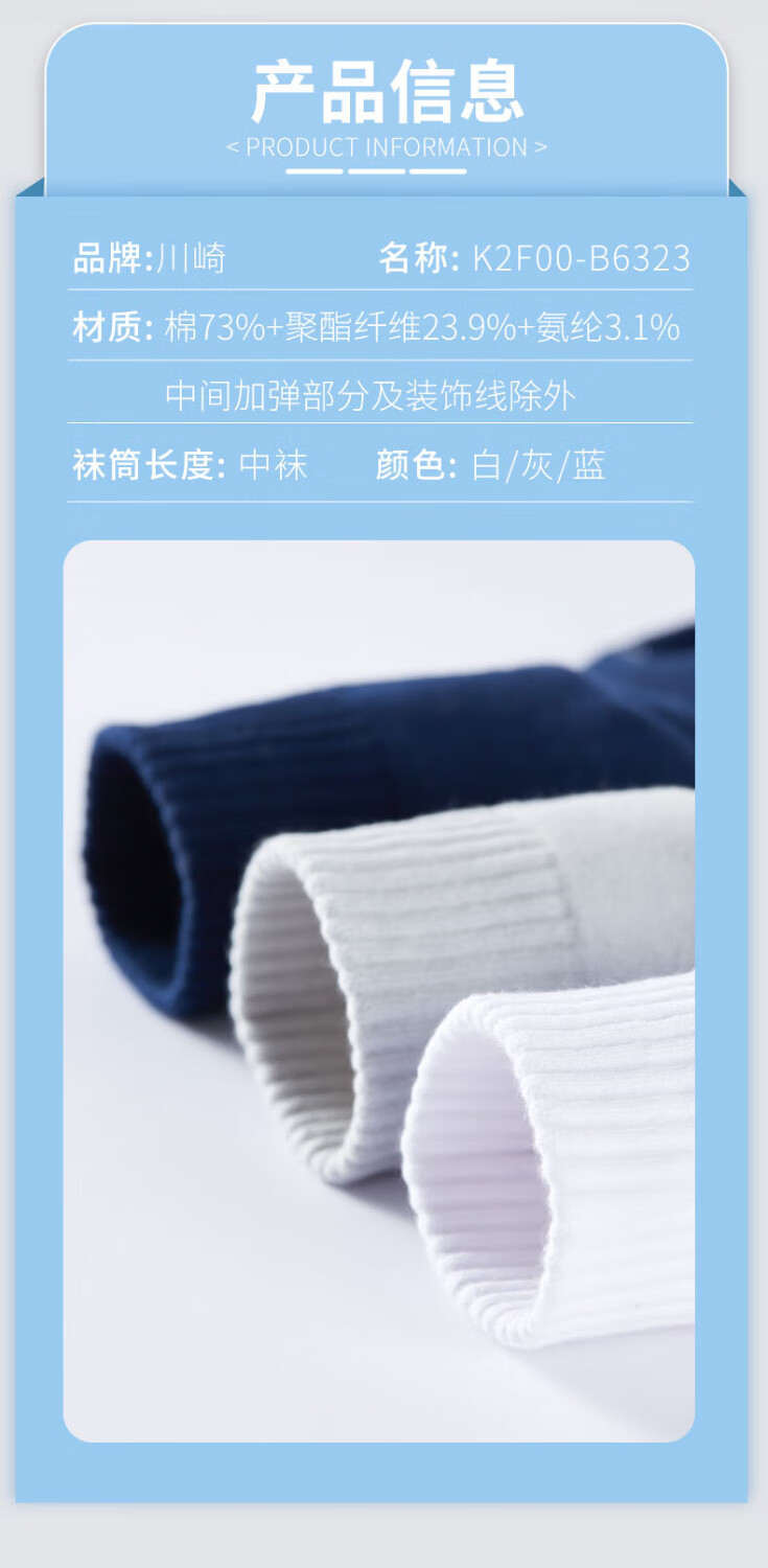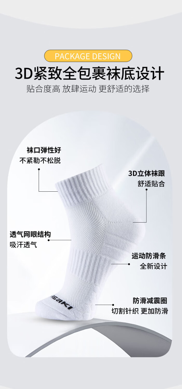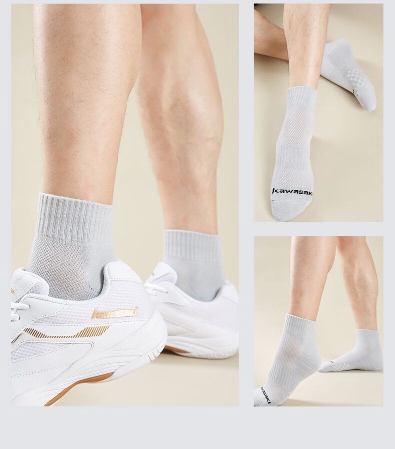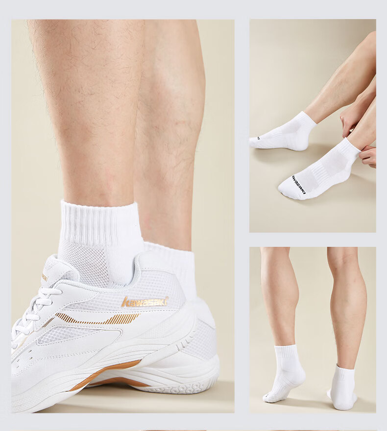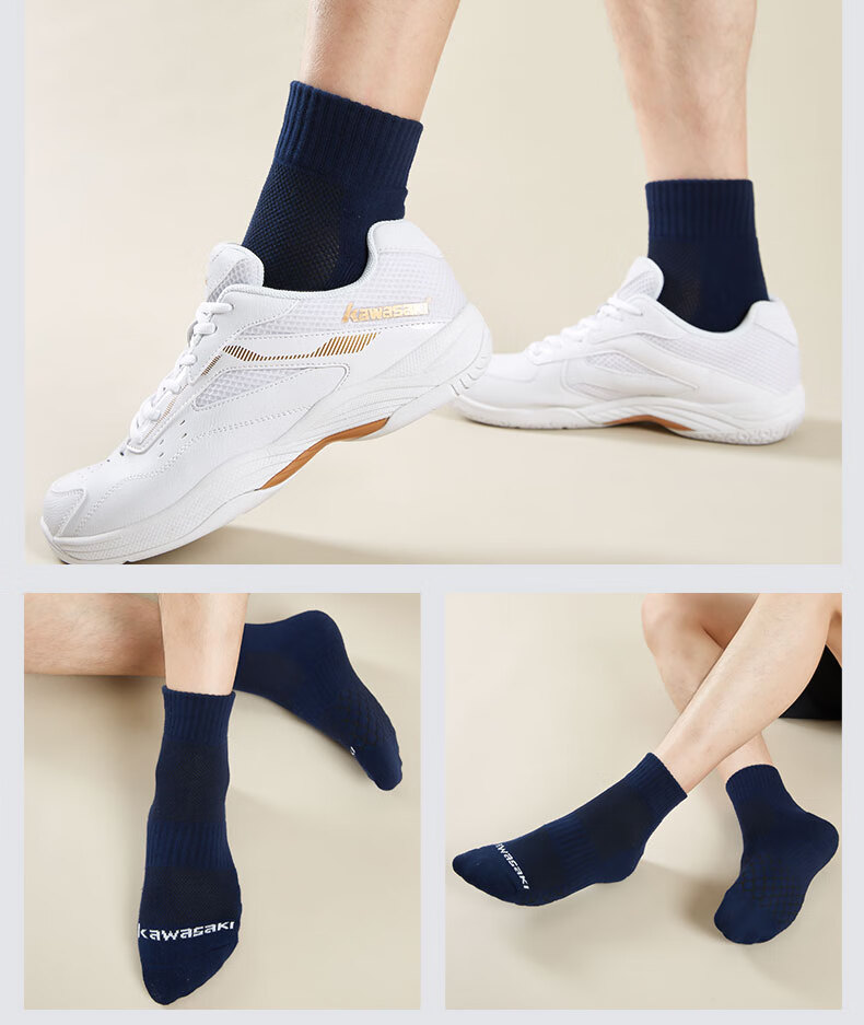 KAWASAKI Kawasaki chaussettes de sport de badminton chaussettes de serviette épaissies de basket-ball de course à pied pour hommes respirantes et absorbant la transpiration blanc pur, gris clair, bleu foncé (3 paires)