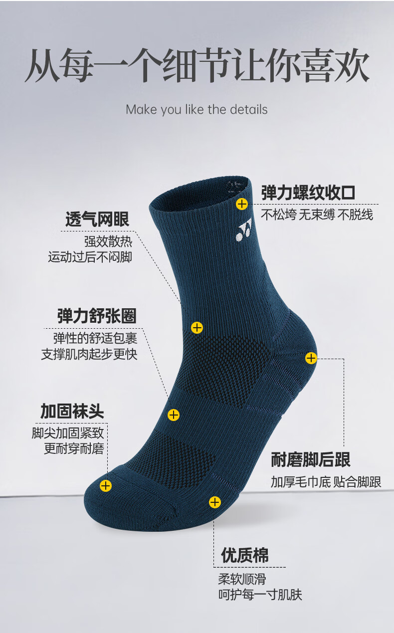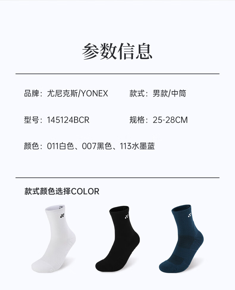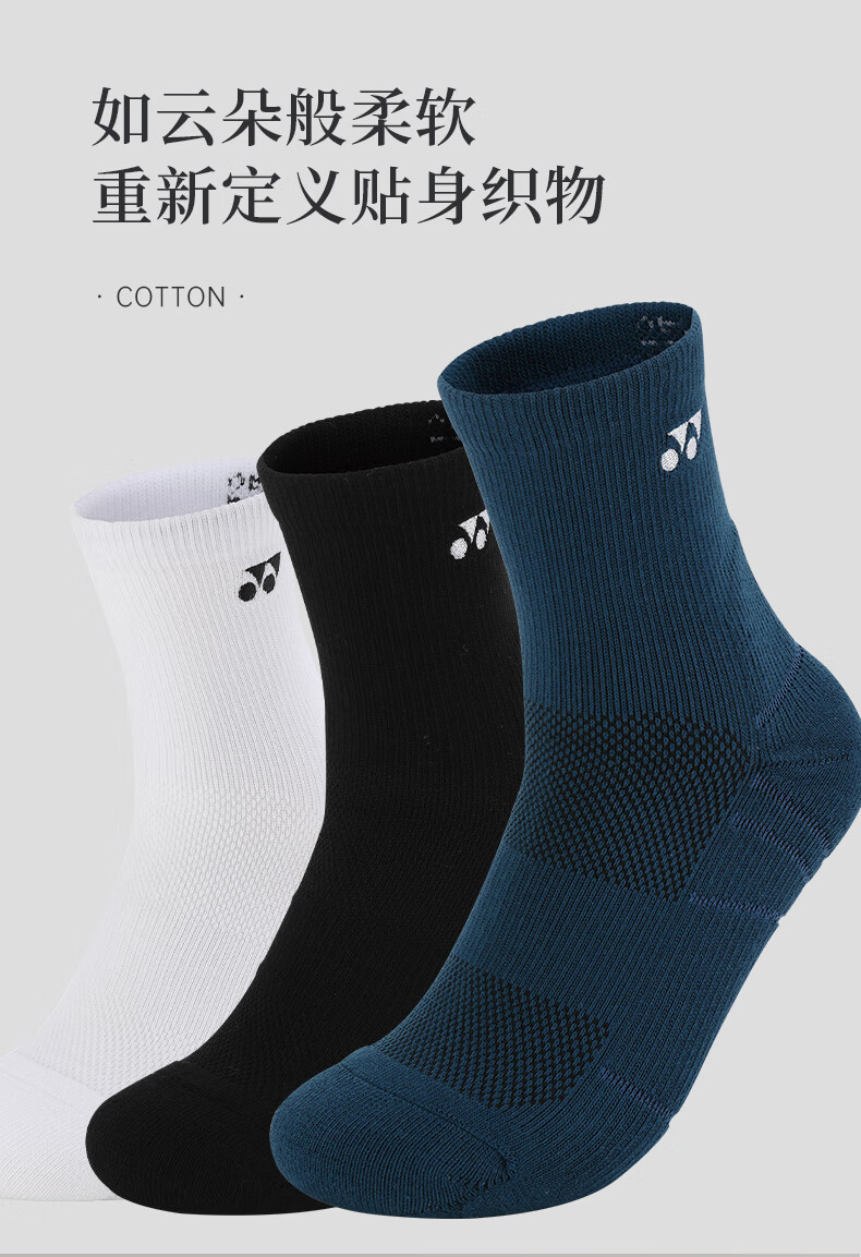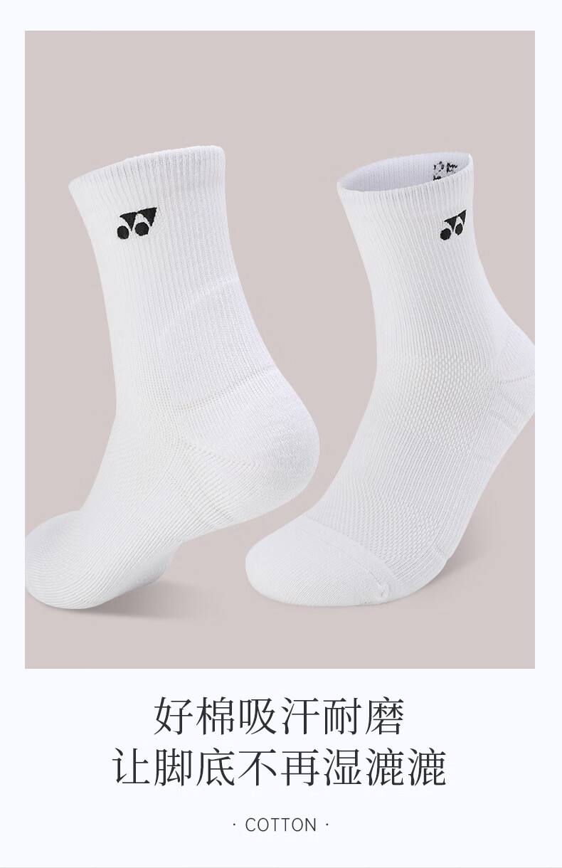 YONEX (YONEX) nouvelles chaussettes de badminton professionnelles pour hommes, chaussettes de sport à fond de serviette épaissi, chaussettes mi-tube, confortables et respirantes 145124BCR 145124 blanc