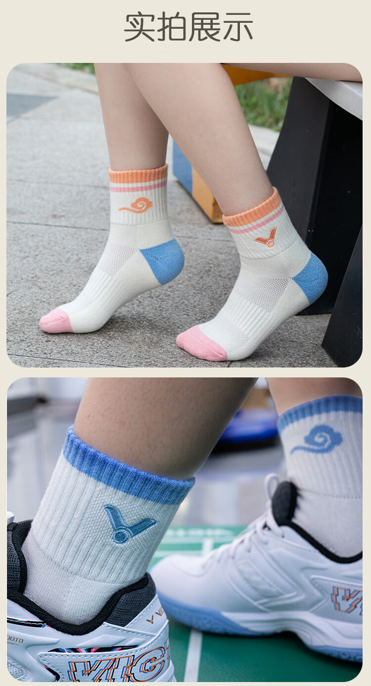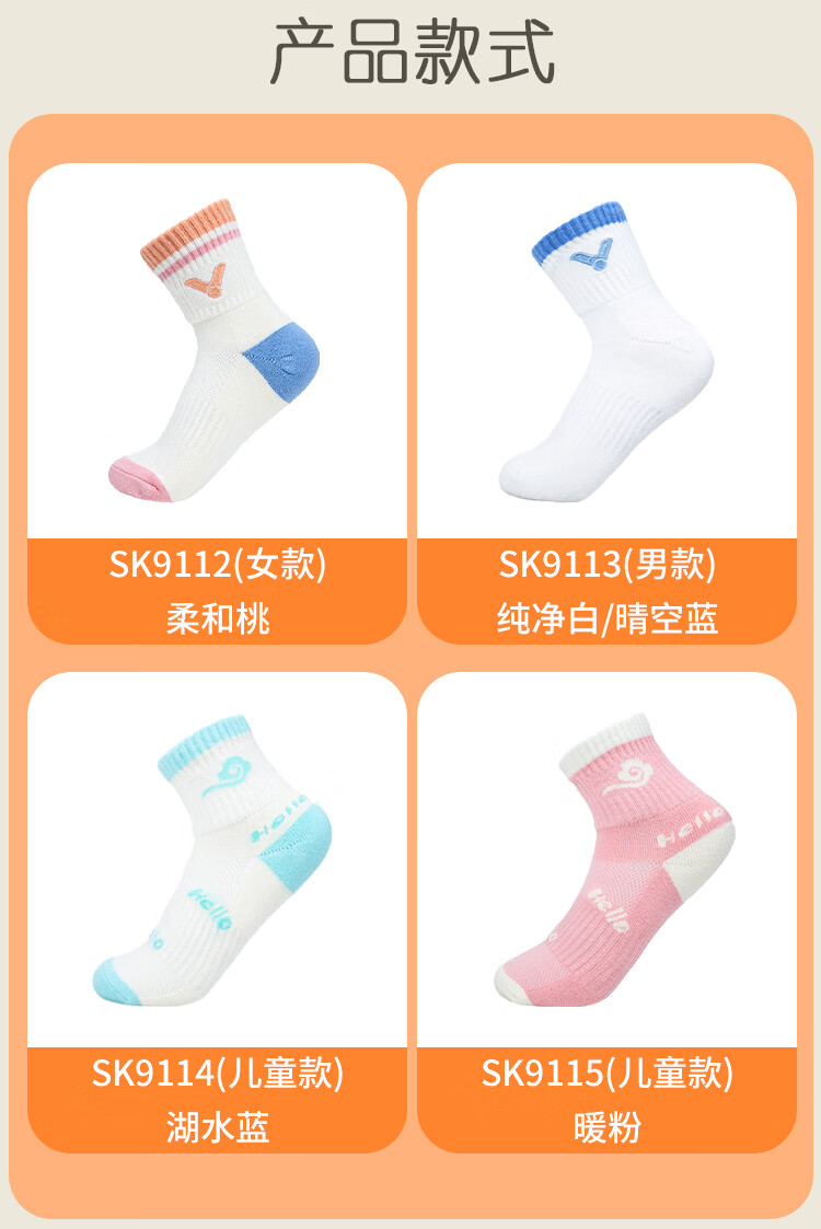 VICTOR Victory Badminton Socks Thickened towel bottom sports socks for men and women, non-slip, sweat-absorbent and breathable mid-calf socks, SK9115 children's socks/warm powder, one pair