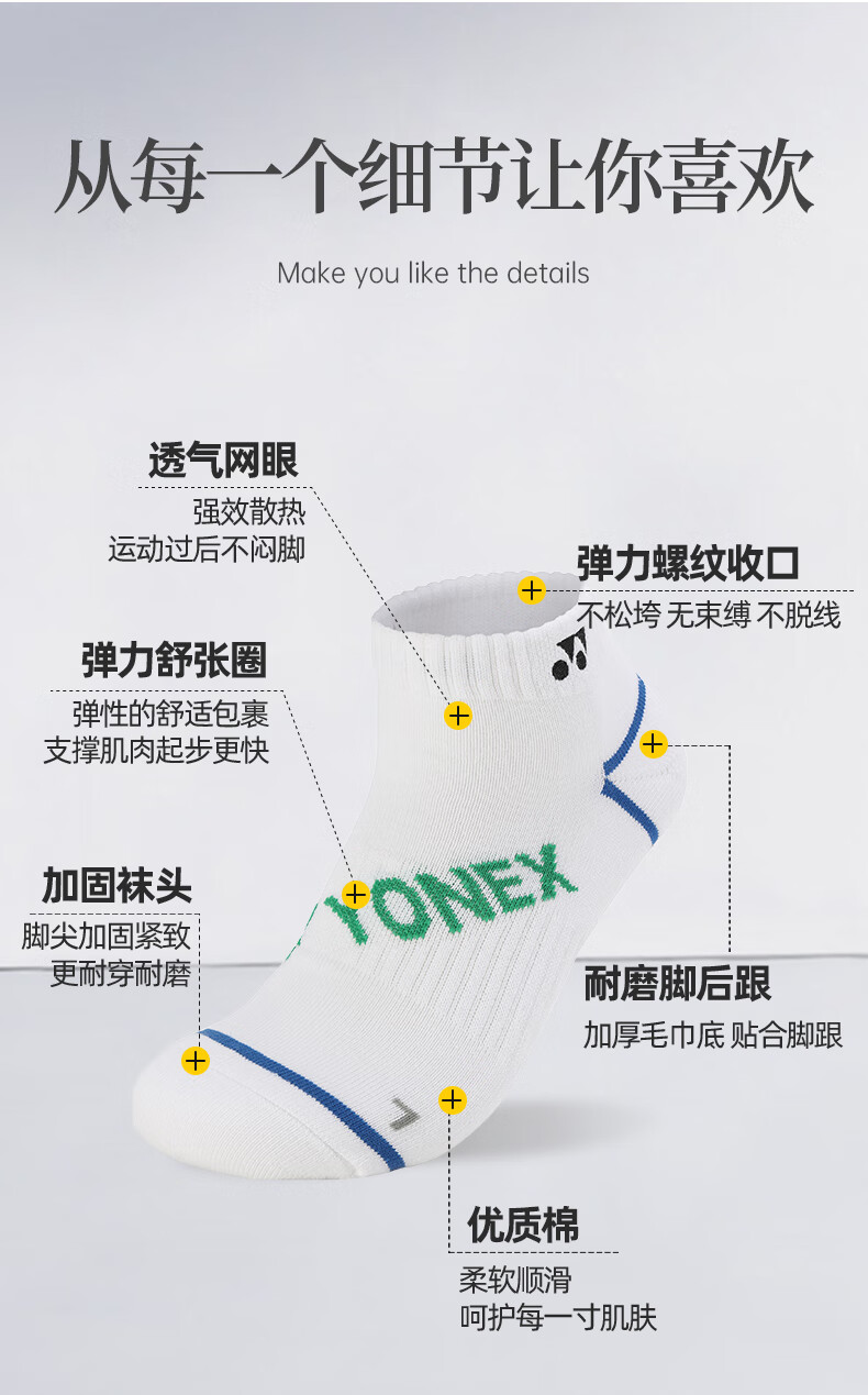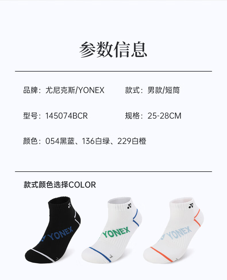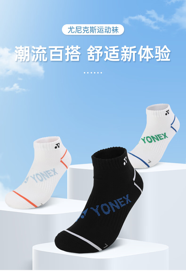 YONEX (YONEX) nouvelles chaussettes de badminton chaussettes de sport à fond de serviette épaissi pour hommes chaussettes courtes confortables respirantes absorbant la sueur 145074BCR chaussettes courtes 145204 blanc bleu
