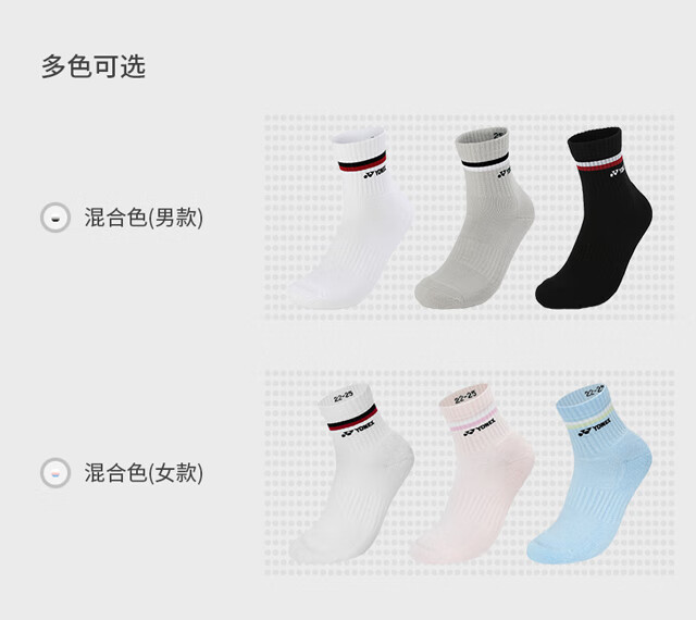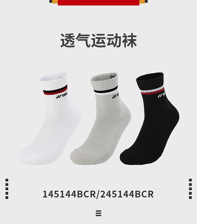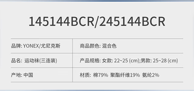 YONEX/尤尼克斯 145144BCR/245144BCR 透气吸汗三双装中筒袜羽毛球袜 245144BCR 混色三双装(女款) 【非质量问题,贴身衣物不退换】