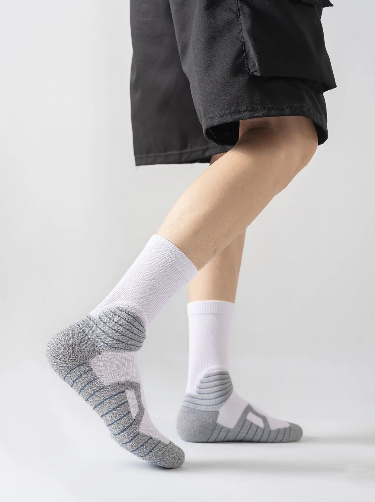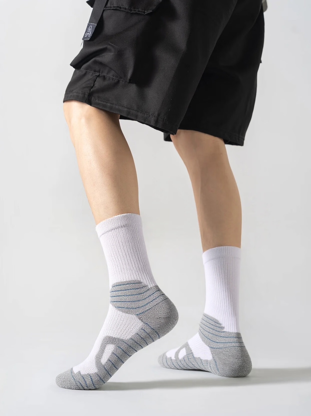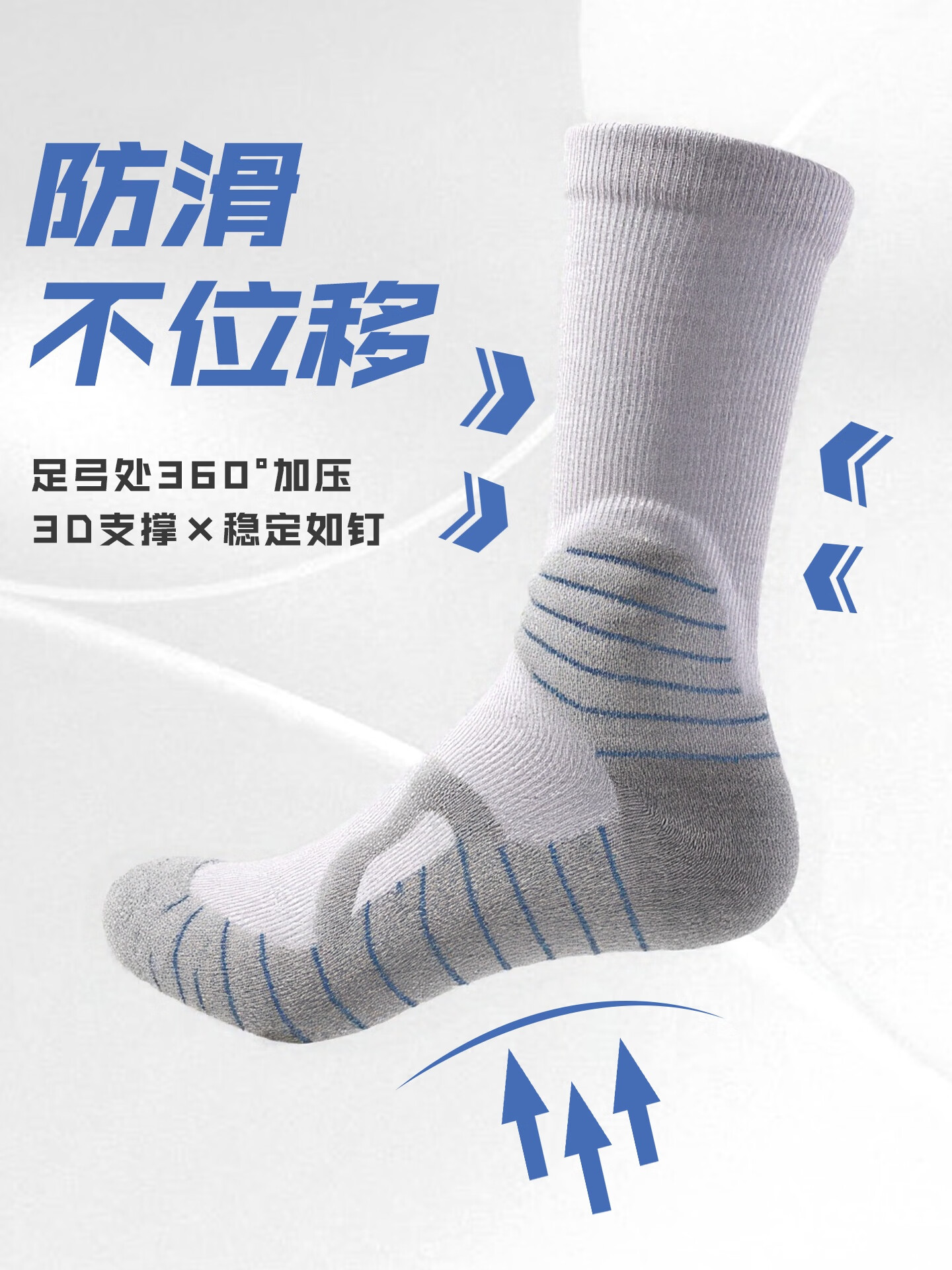 Chaussettes de badminton avec soutien de la voûte plantaire pour hommes, Marathon, course professionnelle, bas de serviette de sport antidérapant, gris, 1 paire, paquet d'essai