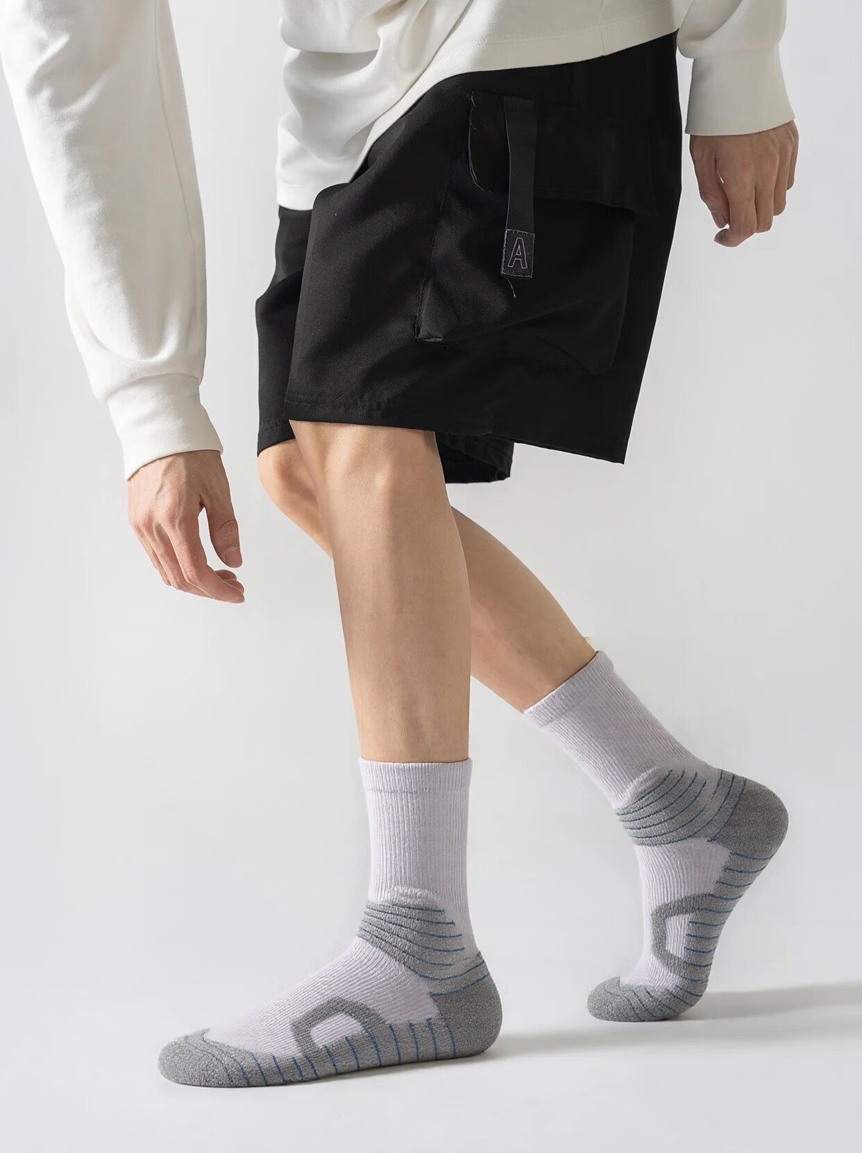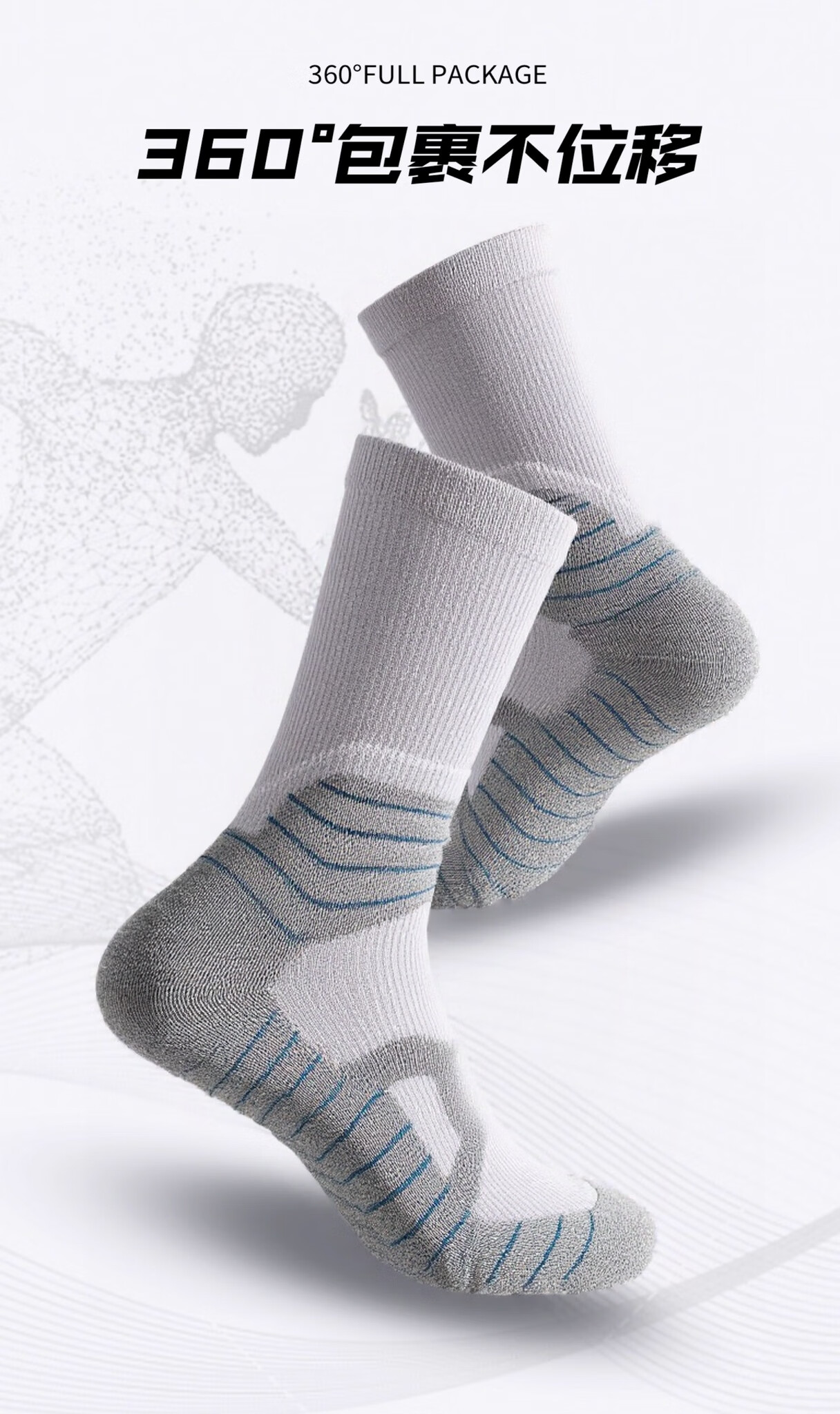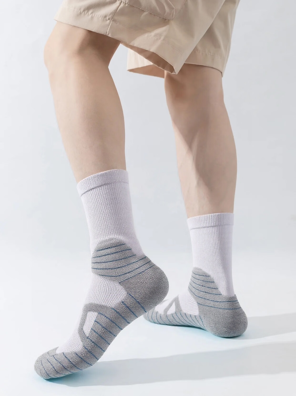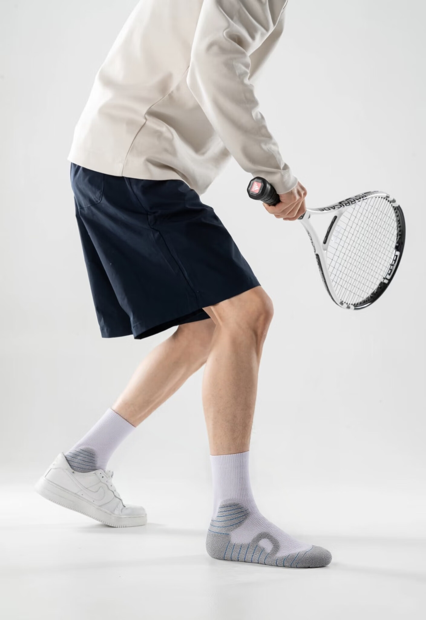 Chaussettes de badminton avec soutien de la voûte plantaire pour hommes, Marathon, course professionnelle, bas de serviette de sport antidérapant, gris, 1 paire, paquet d'essai