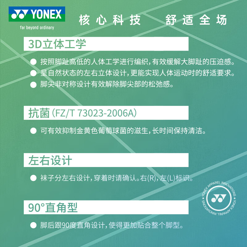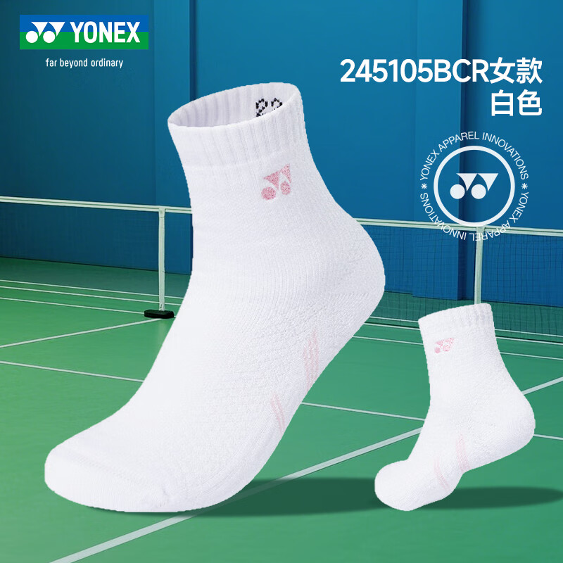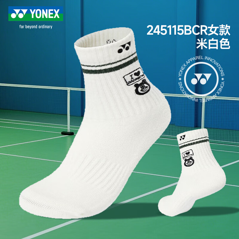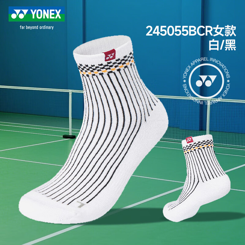 YONEX 尤尼克斯 女士中筒 羽毛球袜运动袜 透气舒适 245060-黑色