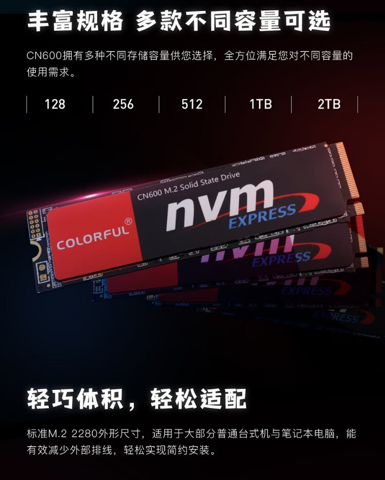 七彩虹(Colorful) 256GB SSD固态硬盘 M.2接口(NVMe协议) CN600系列PCIe 3.0 x4