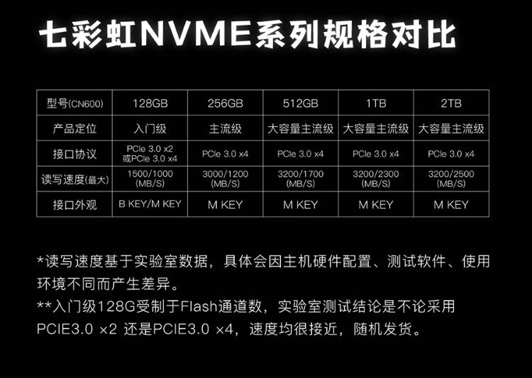 七彩虹(Colorful)  256GB SSD固态硬盘 M.2接口(NVMe协议)  CN600系列PCIe 3.0 x4