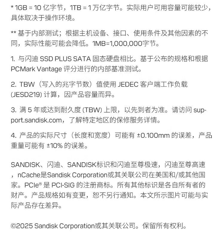 闪迪(SanDisk)1TB SSD固态硬盘3200MB/s读速PLUS性能加强M.2接口NVMe协议PCIe3.0高速笔记本大容量扩容电脑2280