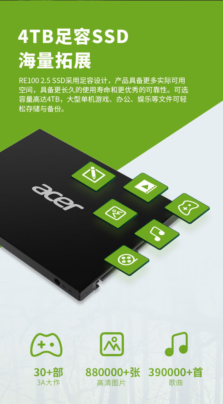 Acer 1 TB SSD-Solid-State-Laufwerk SATA3.0-Schnittstelle RE100-Serie