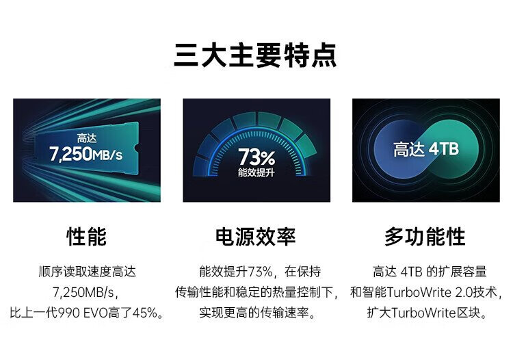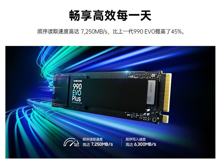 三星(SAMSUNG)4TB SSD固态硬盘 M.2接口(NVMe协议PCIe4.0*4/5.0*2)读速7250MB/S 990 EVO Plus