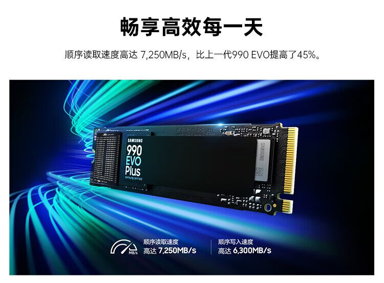 三星(SAMSUNG)2TB SSD固态硬盘 M.2接口(NVMe协议PCIe4.0*4/5.0*2)读速7250MB/S 990 EVO Plus