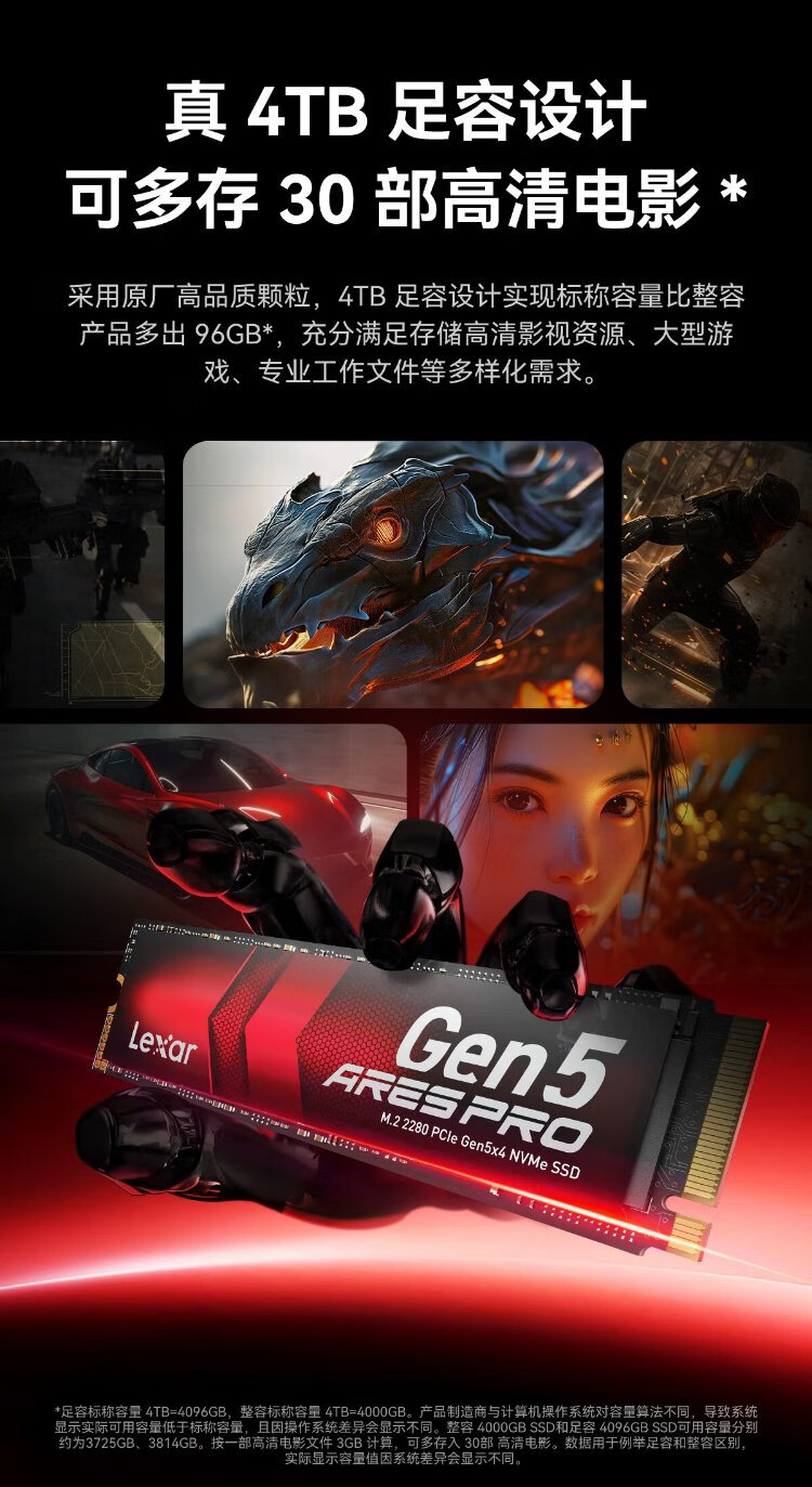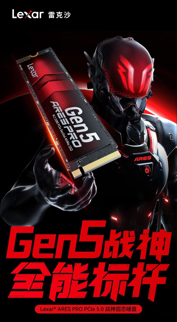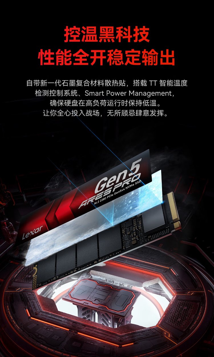 雷克沙(Lexar)ARES PRO 战神系列 4TB SSD固态硬盘 M.2接口(NVMe协议) PCIe 5.0x4 高速14000MB/s传输