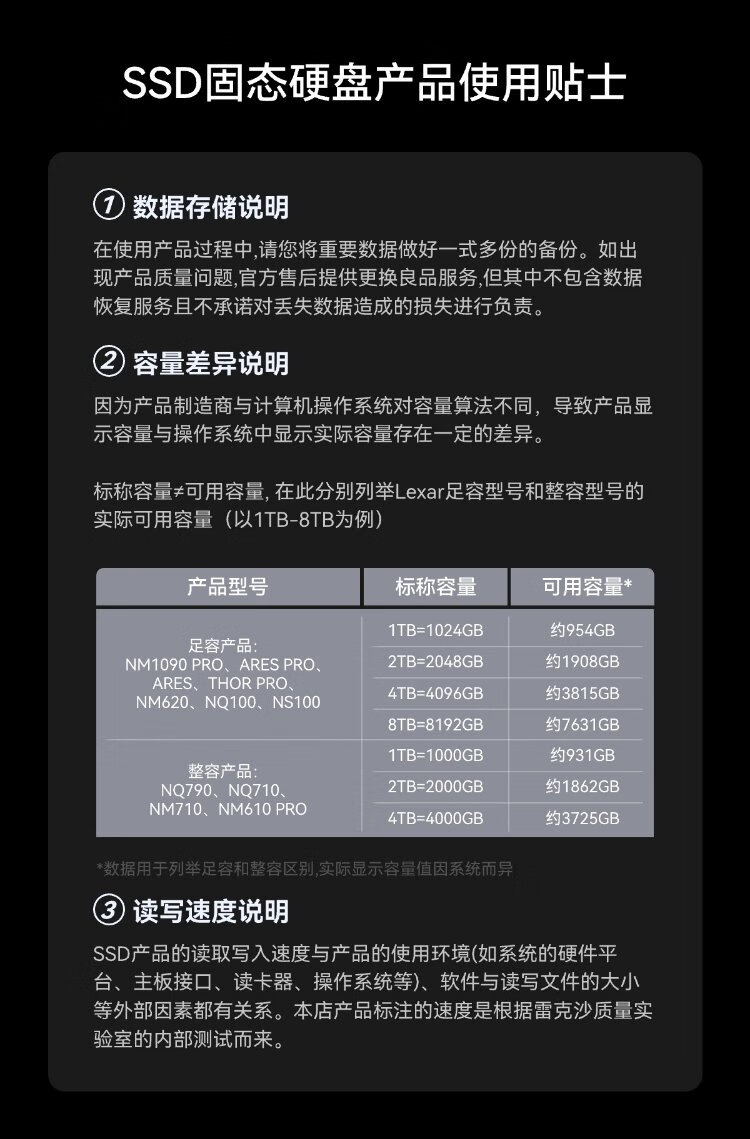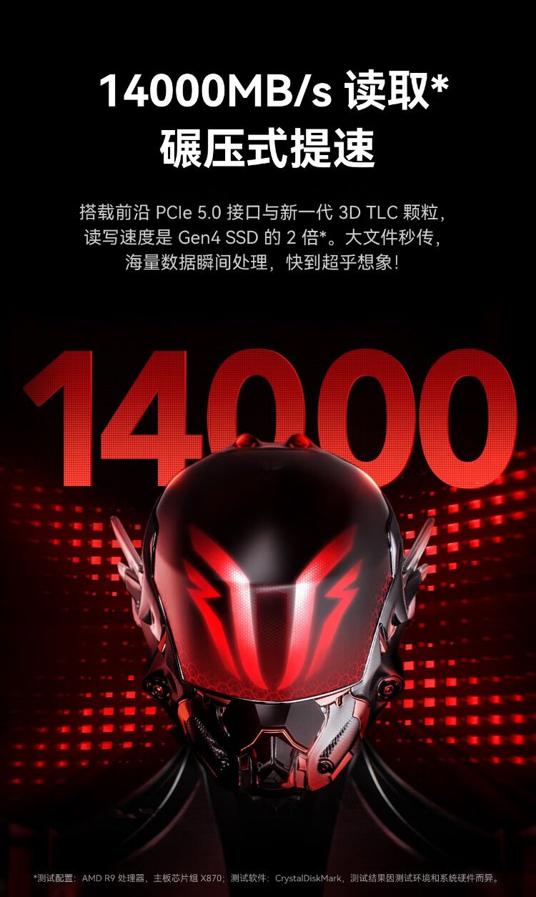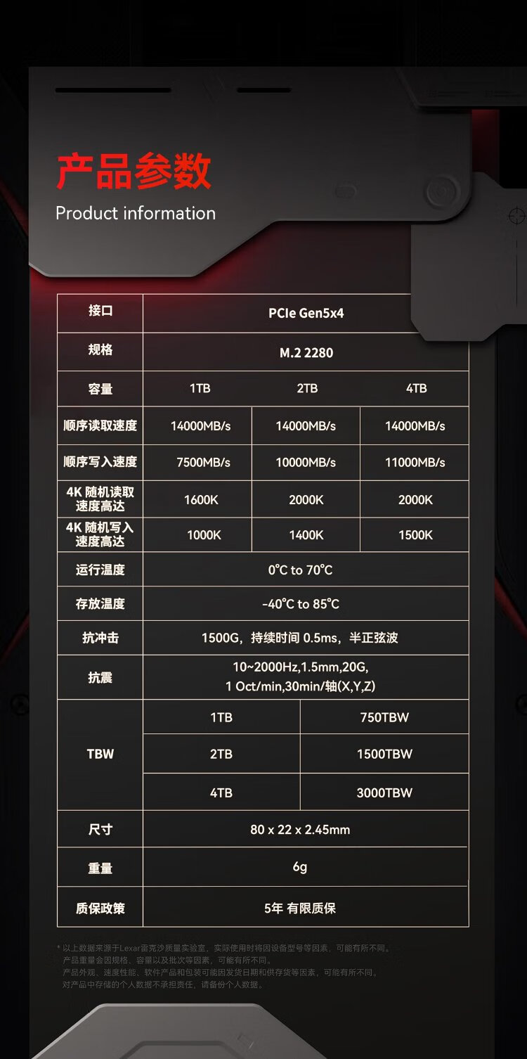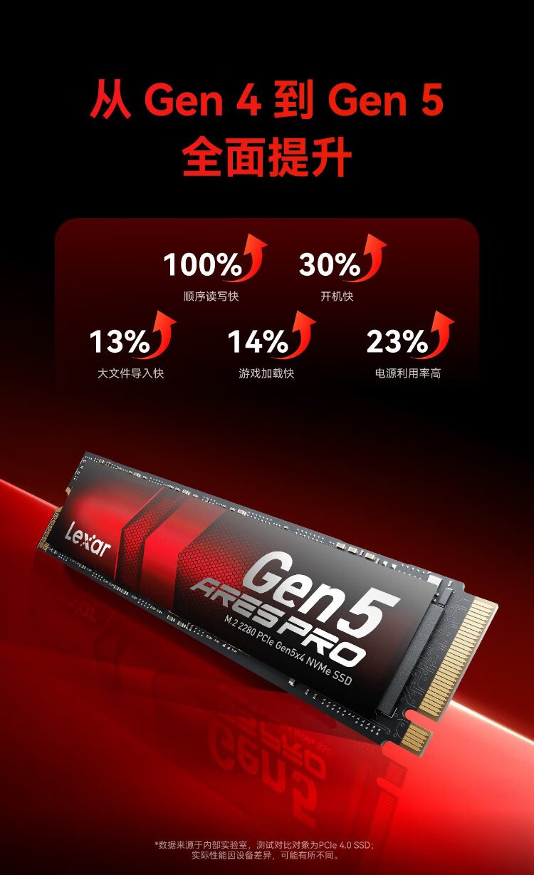 雷克沙(Lexar)ARES PRO 战神系列 4TB SSD固态硬盘 M.2接口(NVMe协议) PCIe 5.0x4 高速14000MB/s传输