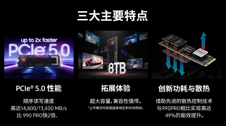 Samsung (SAMSUNG) Disque SSD SSD 8 To Interface M.2 (protocole NVMe PCIe5.0*4) Accessoires informatiques AI vitesse de lecture 14800 Mo/s 9100 PRO