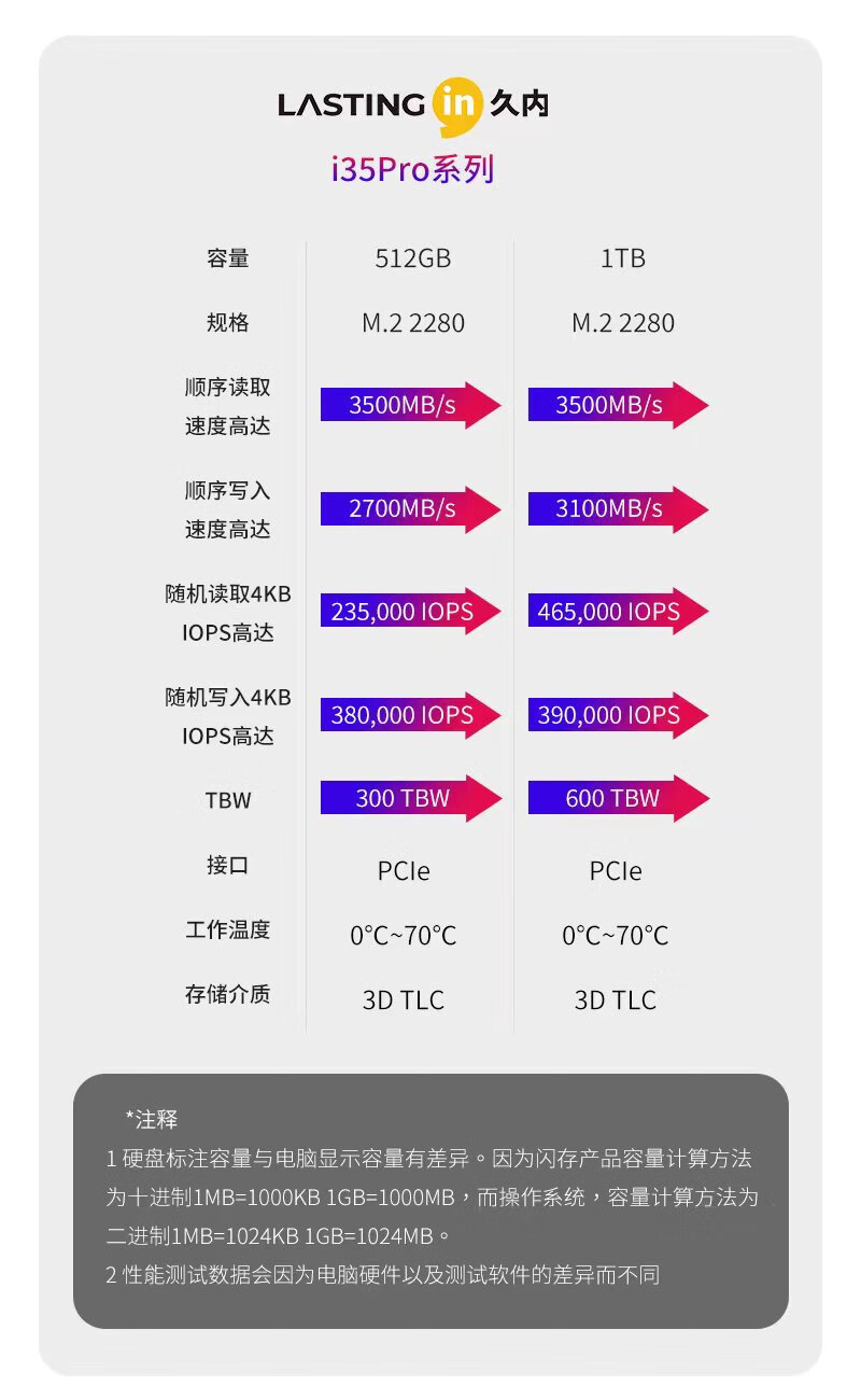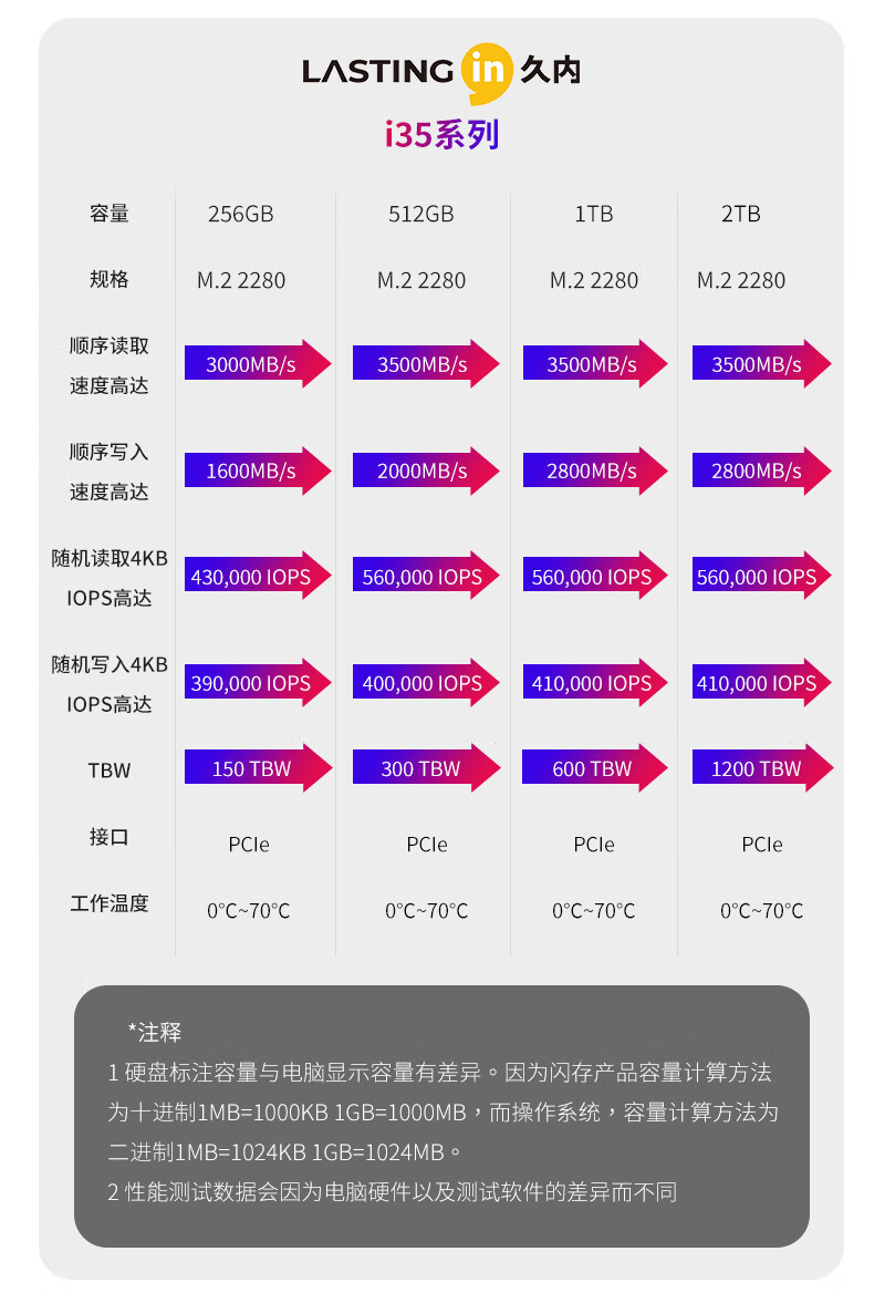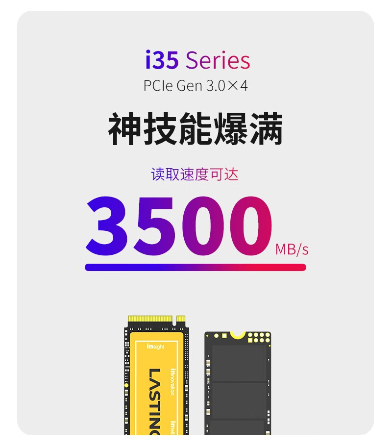 Disque dur SSD LASTINGIN interface M.2 (protocole NVMe) ordinateur de bureau PCIe à quatre canaux disque dur PS5 série i35 512G 3500 M/S particules TLC