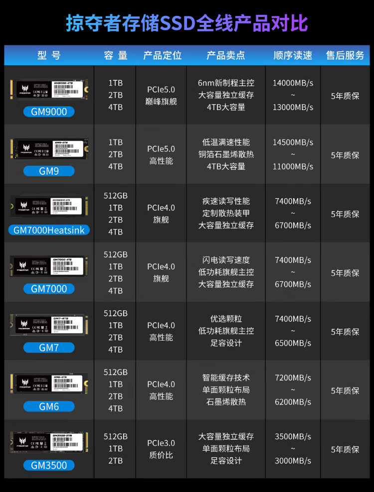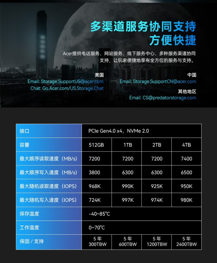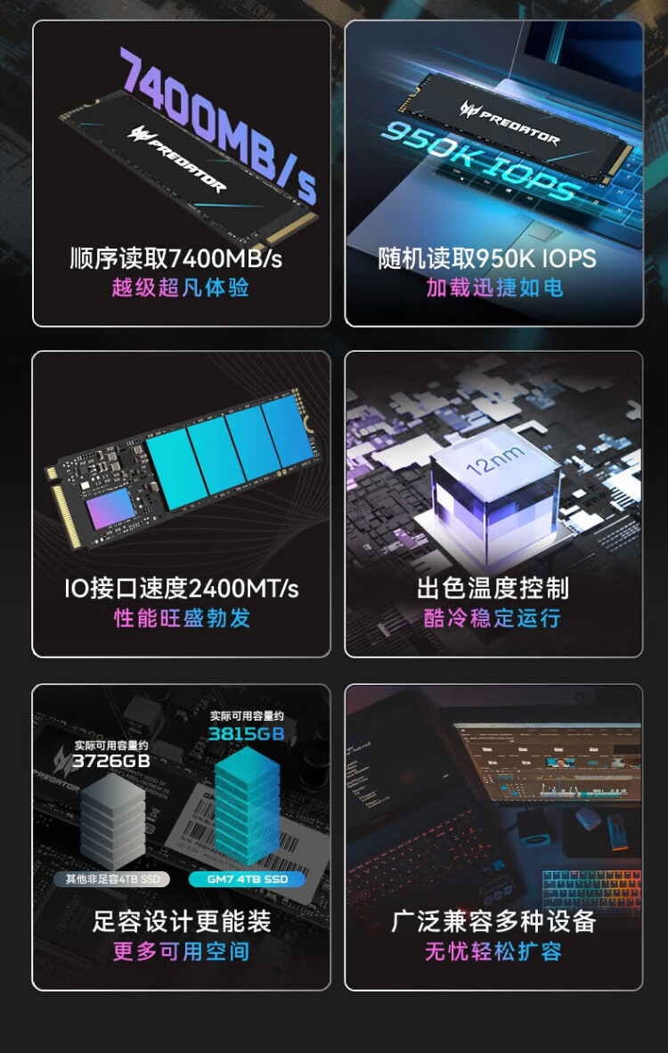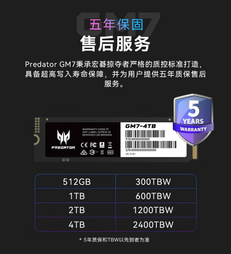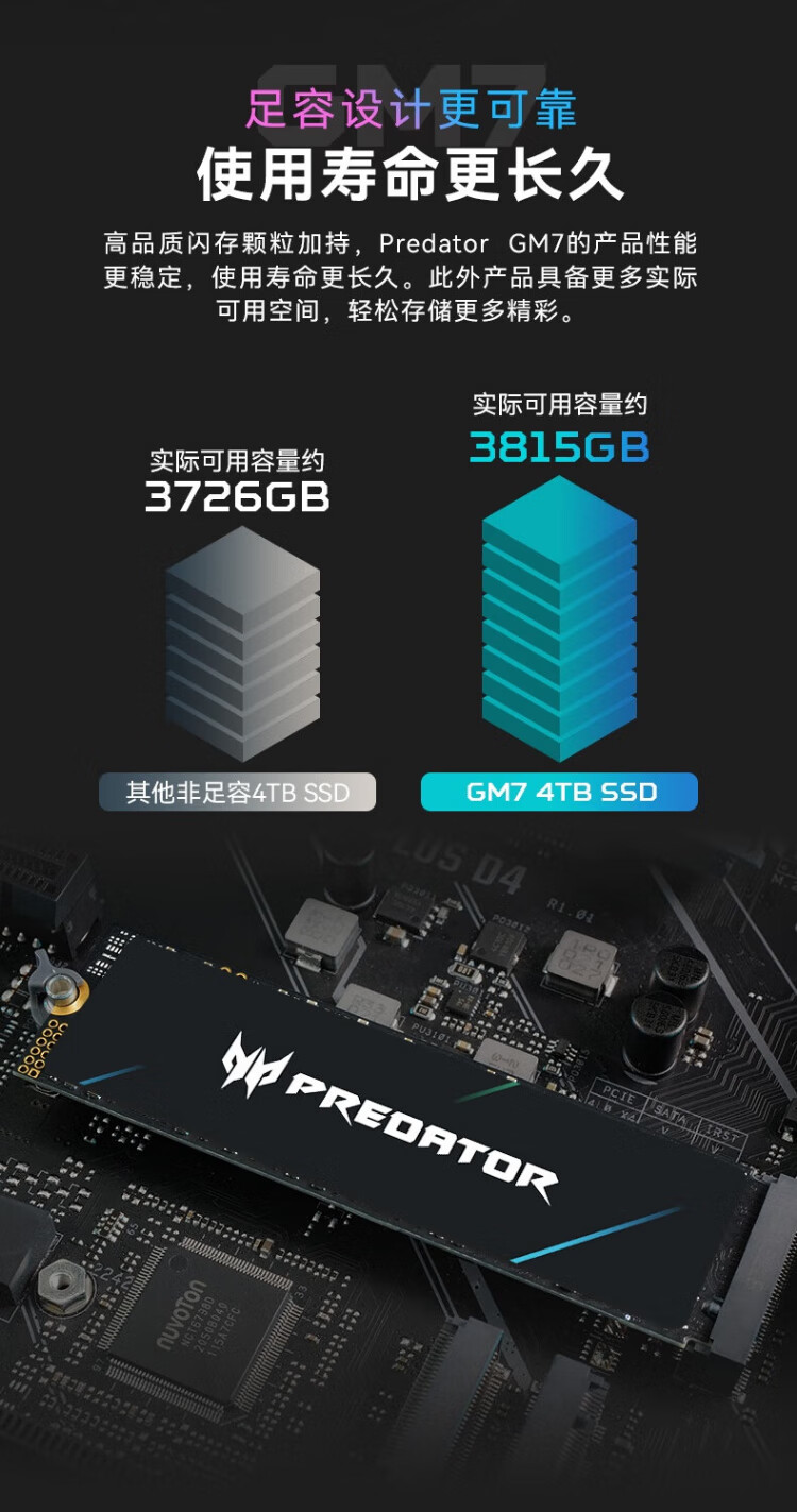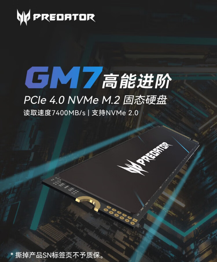 Acer PREDATOR SSD solid state drive M.2 interface (GM7 NVMe PCIe 4.0 protocol) GM7 1TB PCIe4.0*4