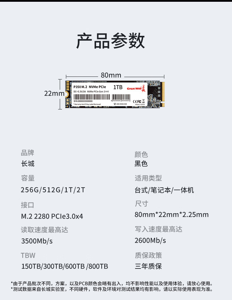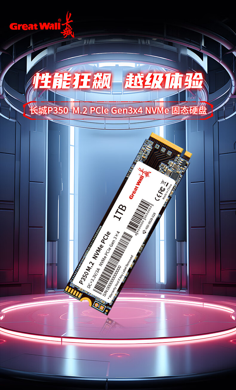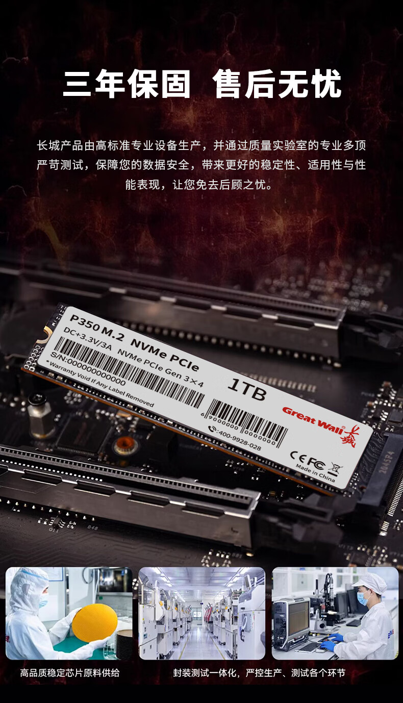 Disque SSD Great Wall Interface M.2 (protocole NVMe) PCIe 3.0x4 Série P350 Vitesse de lecture jusqu'à 3 500 Mo/s Accessoires de stockage PC AI Modèle phare P350-1 To