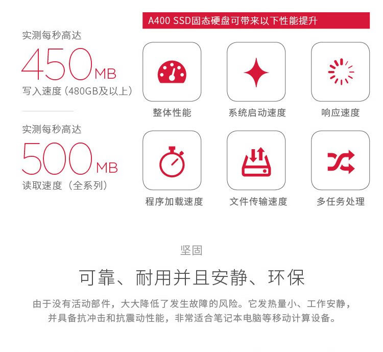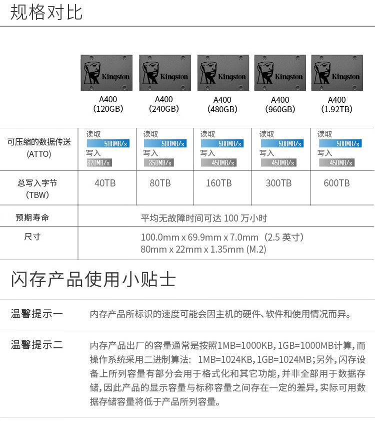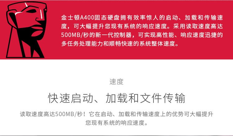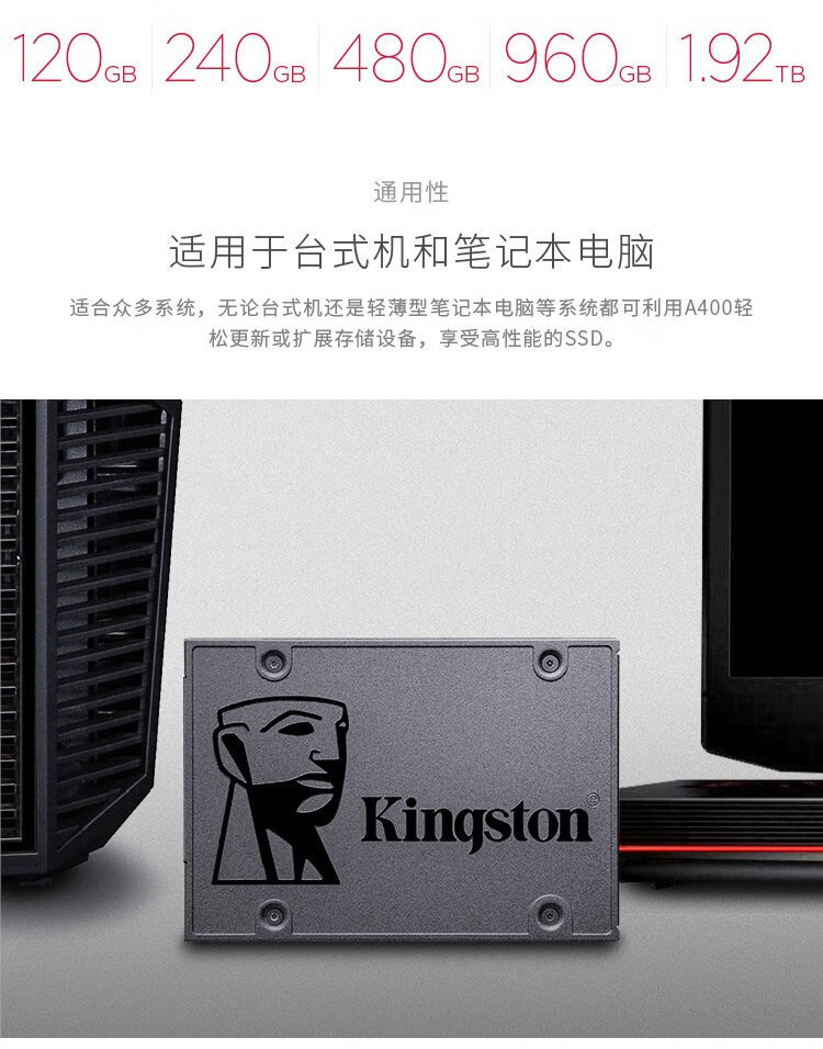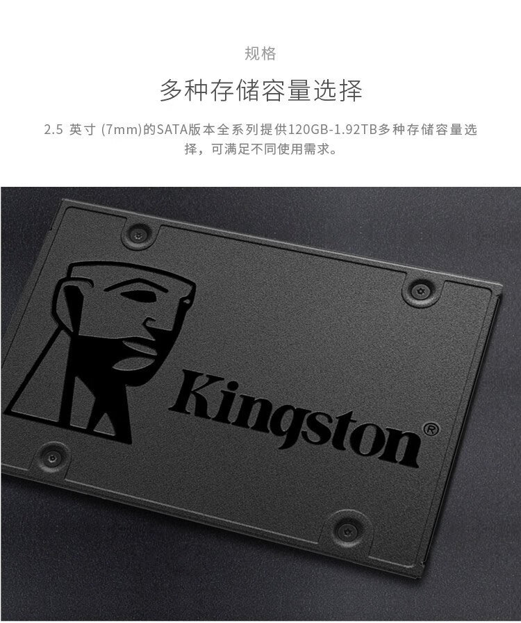 金士顿(Kingston)240GB SSD固态硬盘 SATA3.0接口 A400系列 读速高达500MB/s