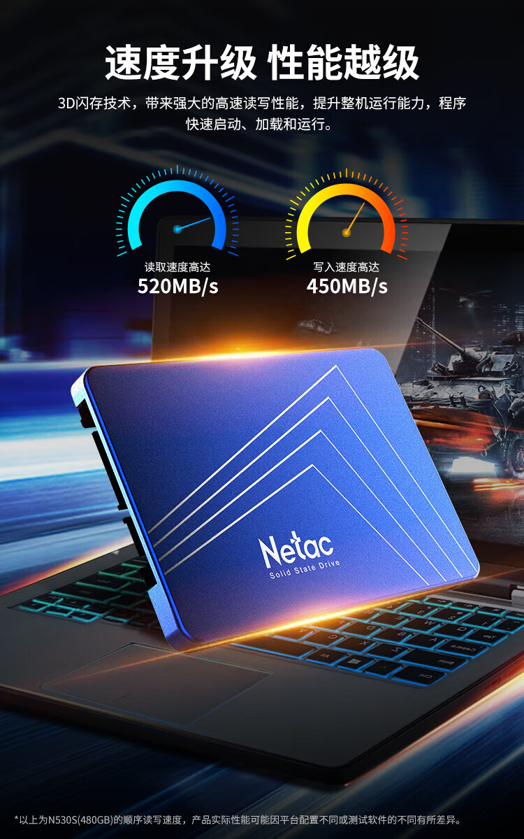 朗科(Netac)480GB SSD固态硬盘 SATA3.0接口 N530S超光系列 电脑升级核心组件