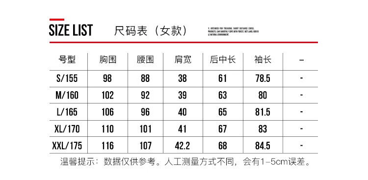 China (cm) 160-165/84-86 165-170 / 88-90 167-172 / 92-96 168-173 / 98-102 170-176 / 106-110