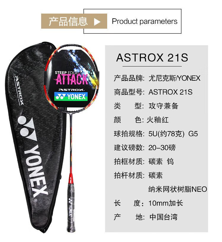 YONEX Yonex badminton racket full carbon single shot sky ax AX21S fire glaze red 5U5 has been worn 26 pounds with hand glue