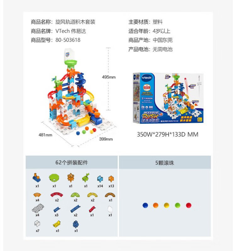 伟易达(Vtech)积木旋风轨道套装 大颗粒拼装STEAM教4-8岁玩具男女孩儿童节礼物