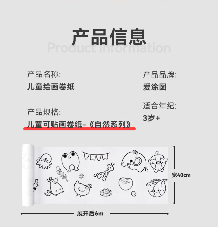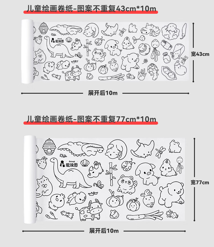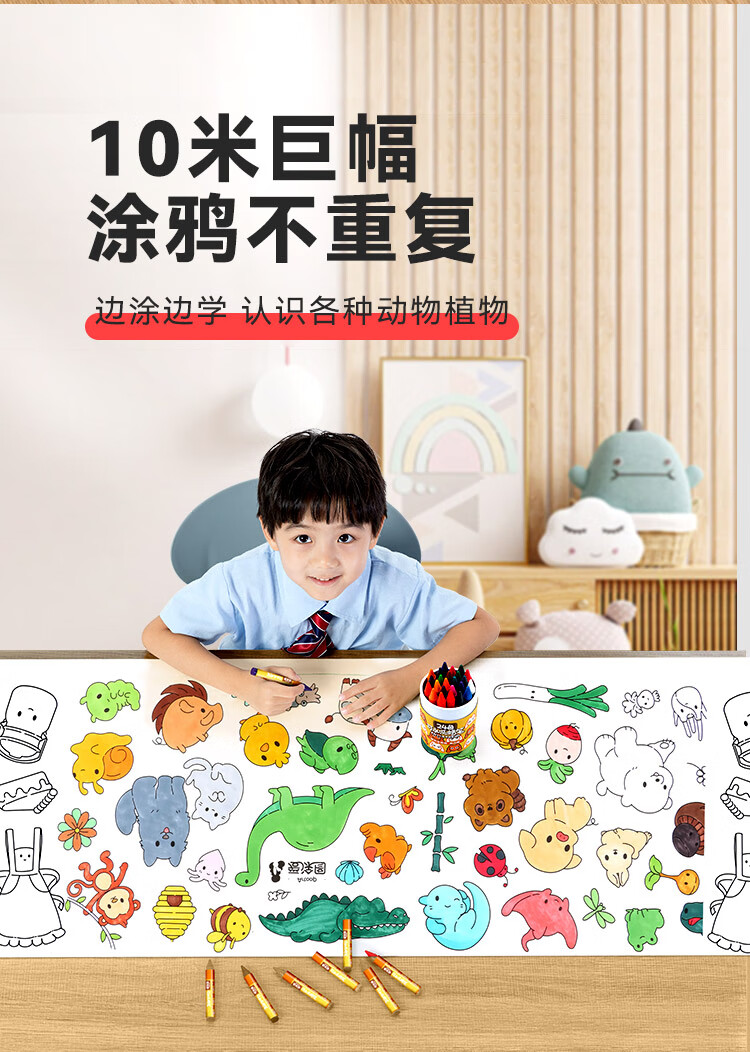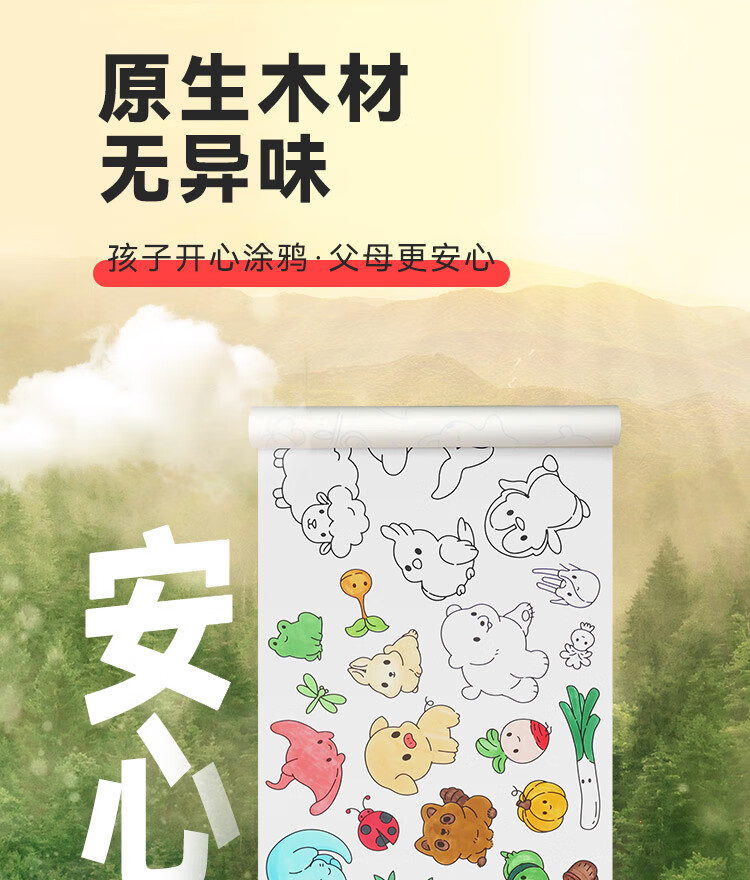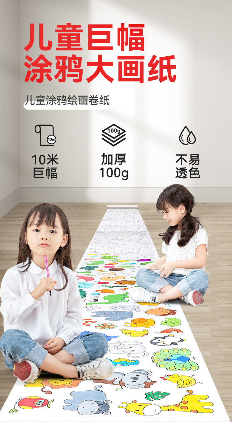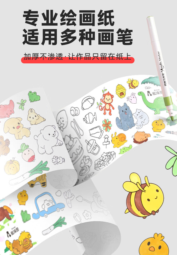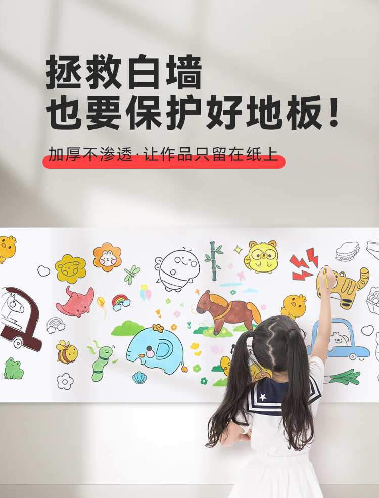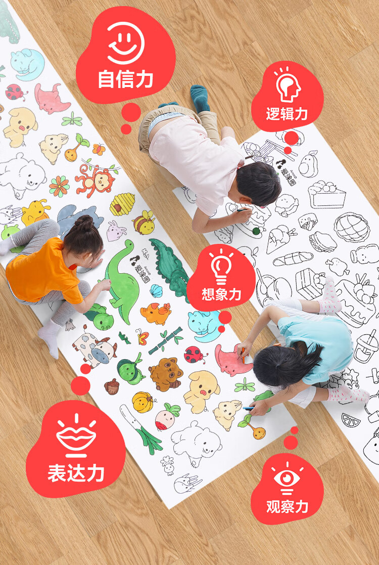 中盛画材 长卷绘画纸填色本儿童涂鸦画纸整卷大张巨幅超大超长画画卷纸宝宝专用纸画画纸大画纸美术纸加厚 速写 马克笔绘画