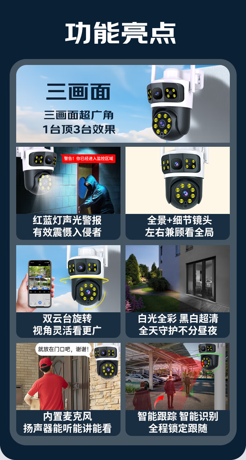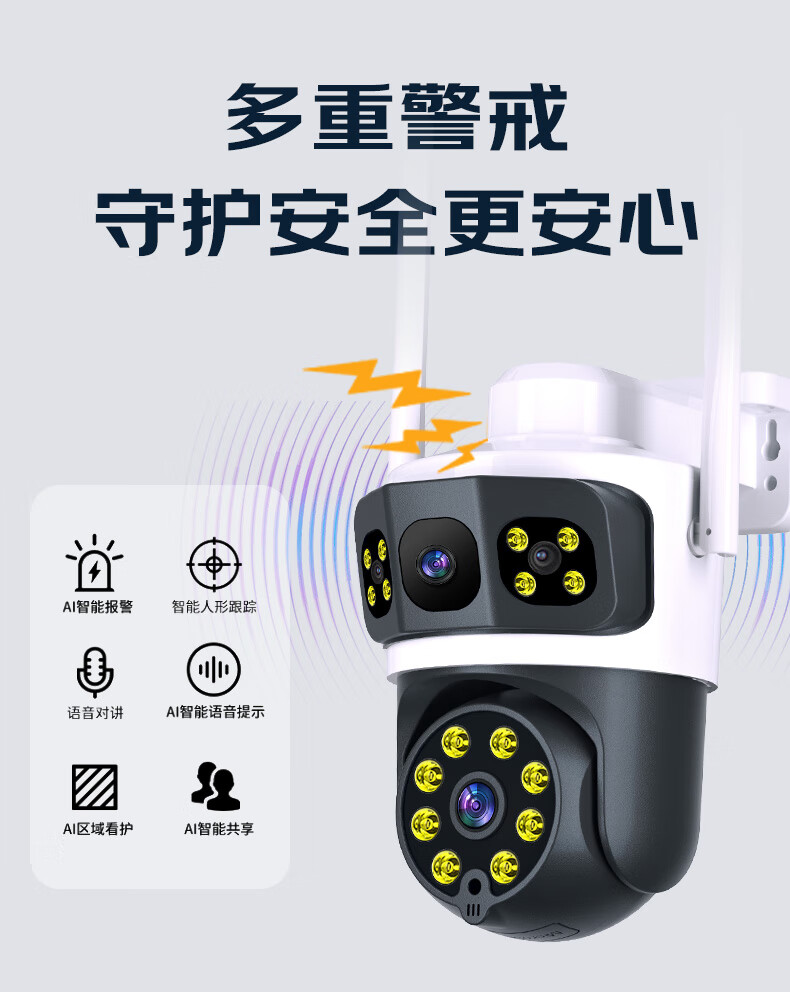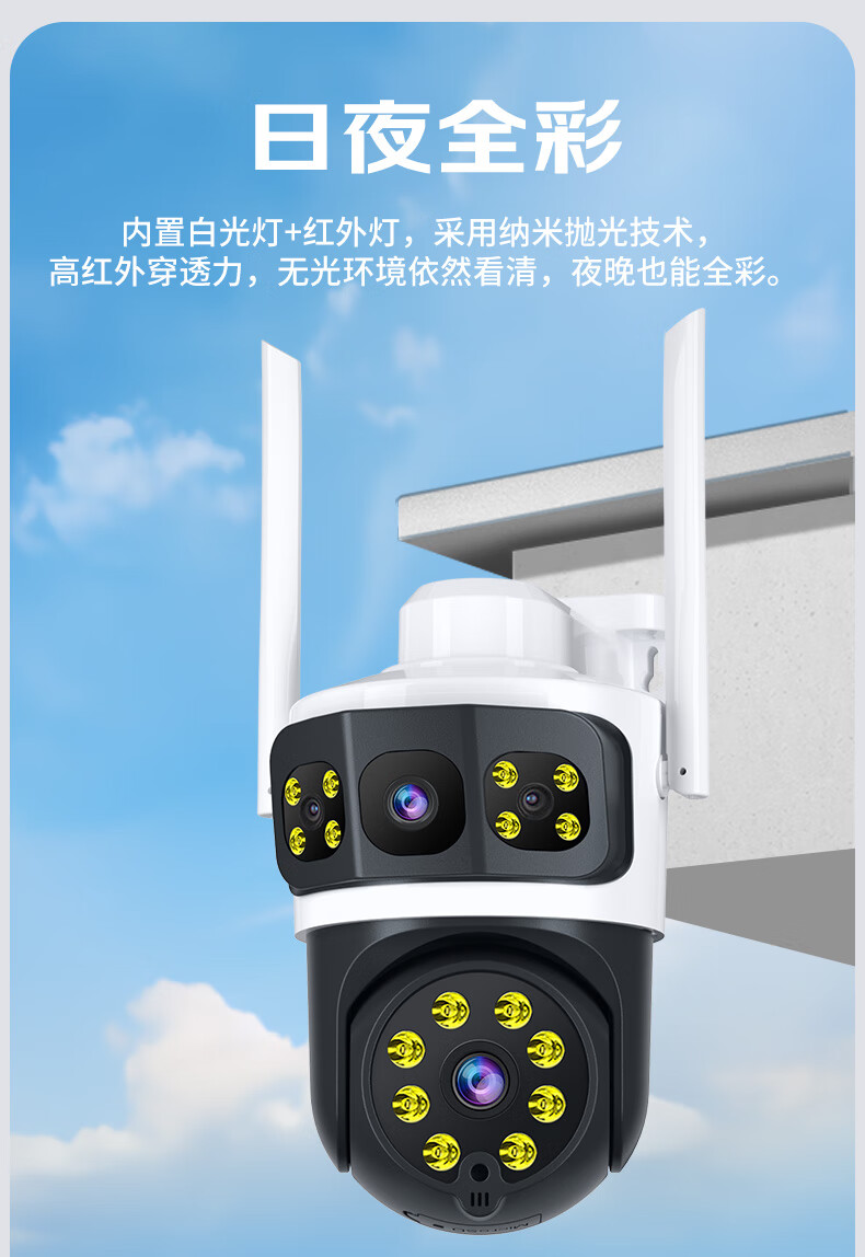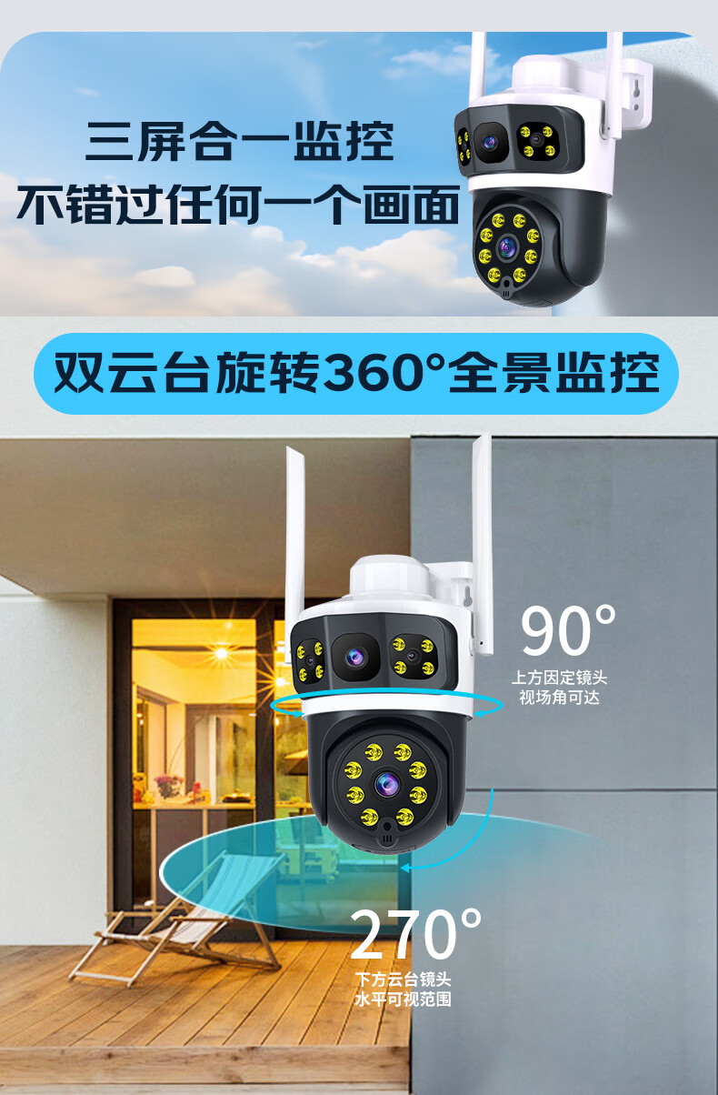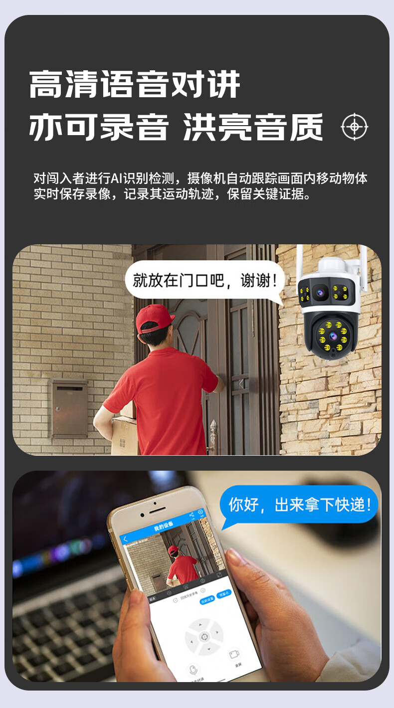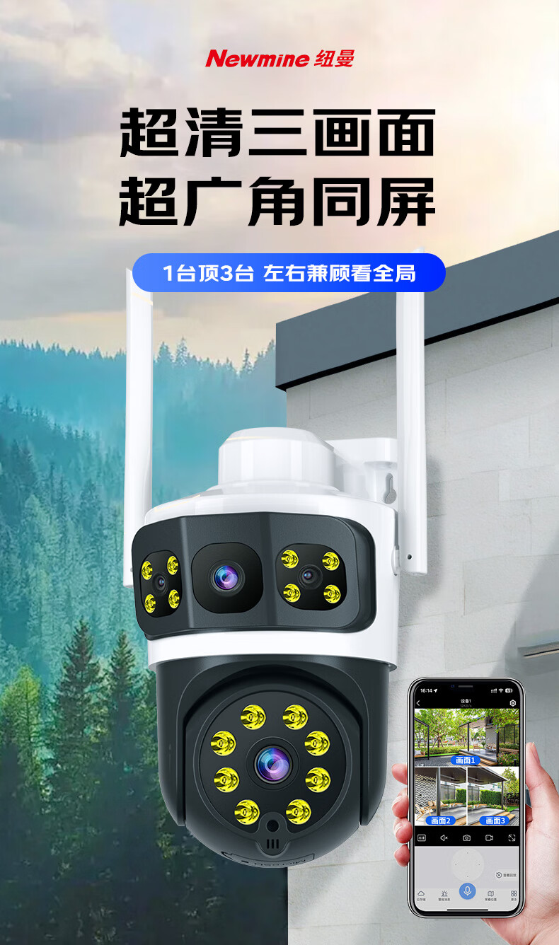 纽曼无线家用AI摄像头手机远程监控器360度无死角带夜视全景全彩追踪语音农村室外户外防水旋转球机