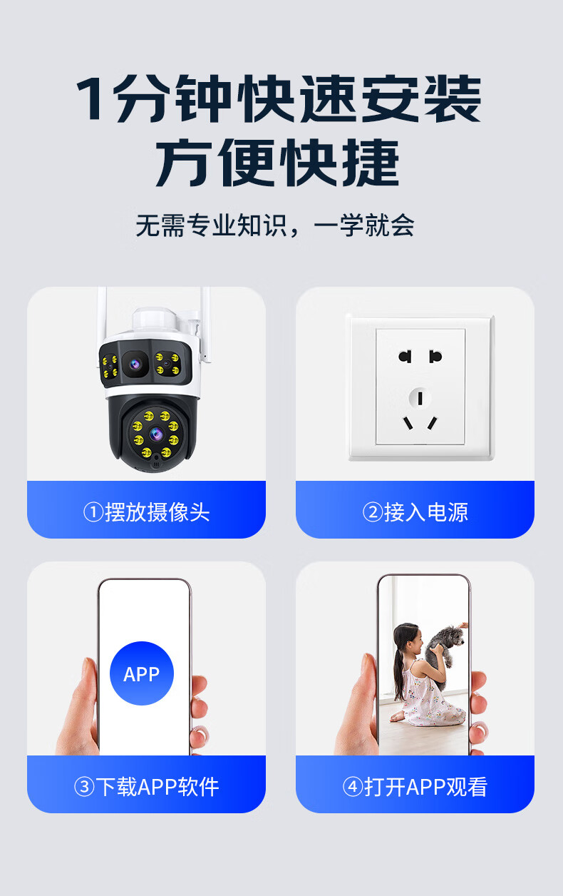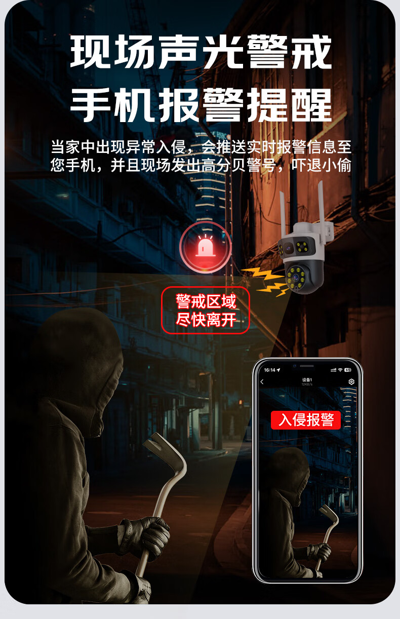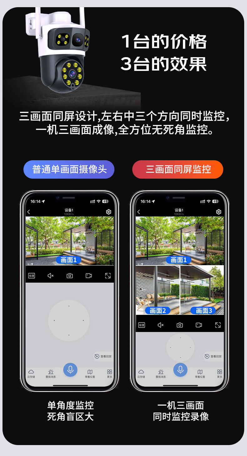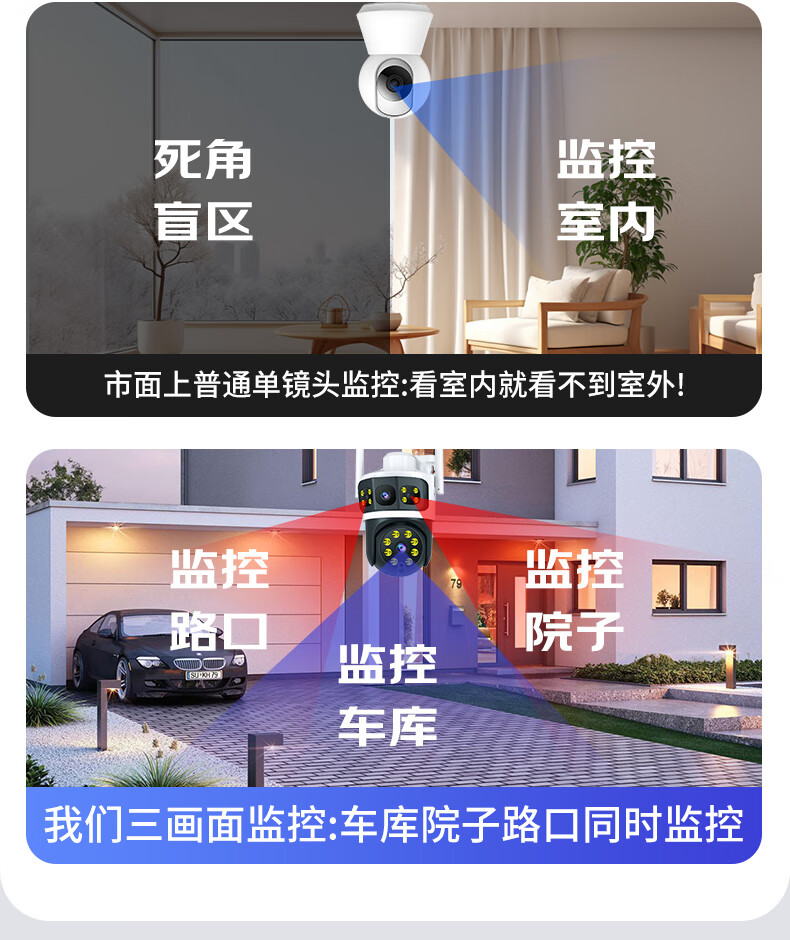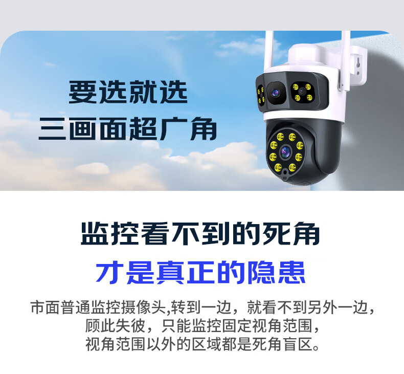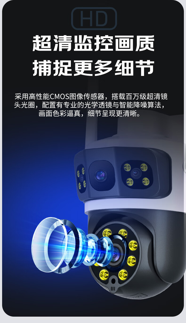 纽曼无线家用AI摄像头手机远程监控器360度无死角带夜视全景全彩追踪语音农村室外户外防水旋转球机