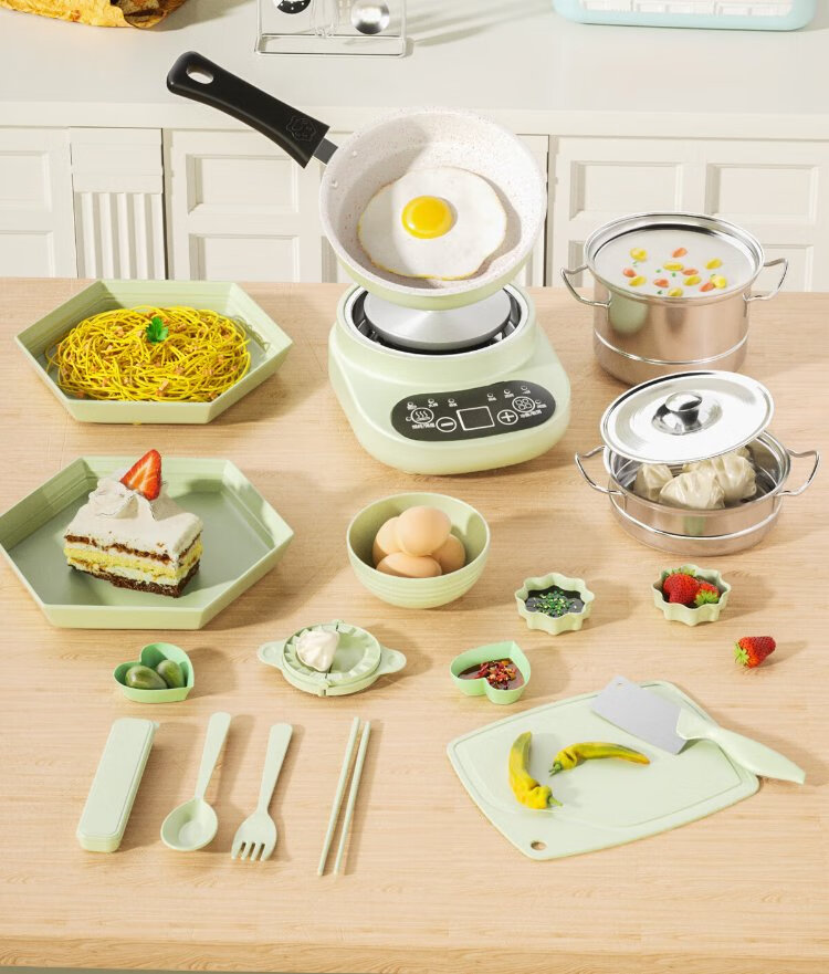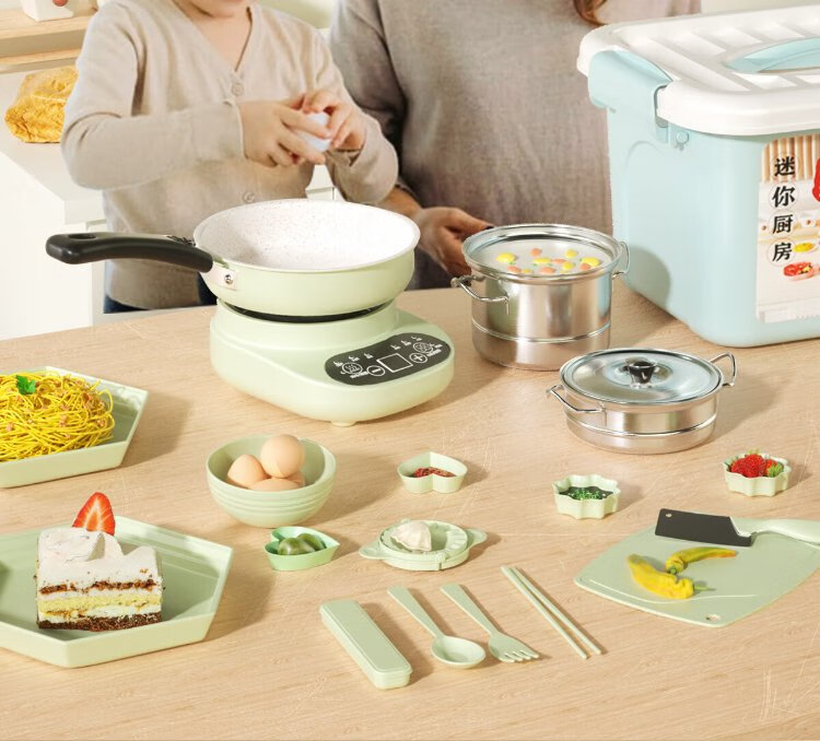 304 пищевой пищевой материал, настоящий кухонный материал Xinge, мини-кухня, полный набор для приготовления пищи, небольшая кухонная утварь, игровой домик, игрушки для мальчиков и девочек, настоящая кулинарная еда для детей 6-10 лет, набор из 28 предметов, зеленый