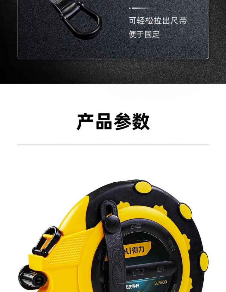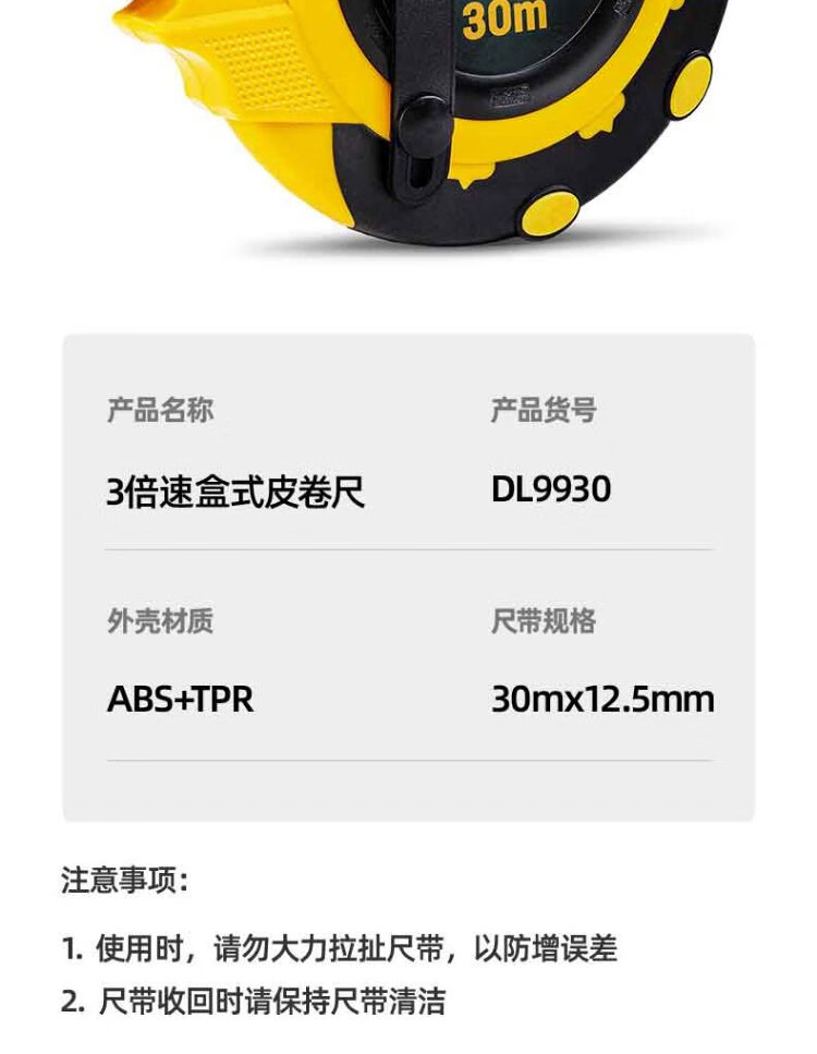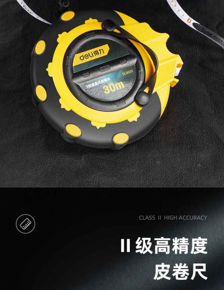 deli得力 3倍速盒式皮卷尺工地测量尺测距尺30m DL9930