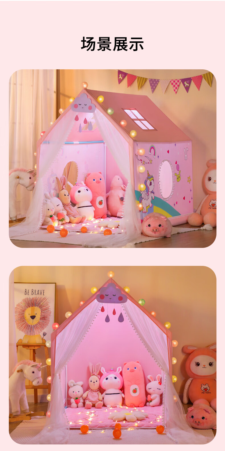桑巴宝贝儿童帐篷室内公主房游戏屋宝宝家用小房子女孩城堡过家家玩具礼物