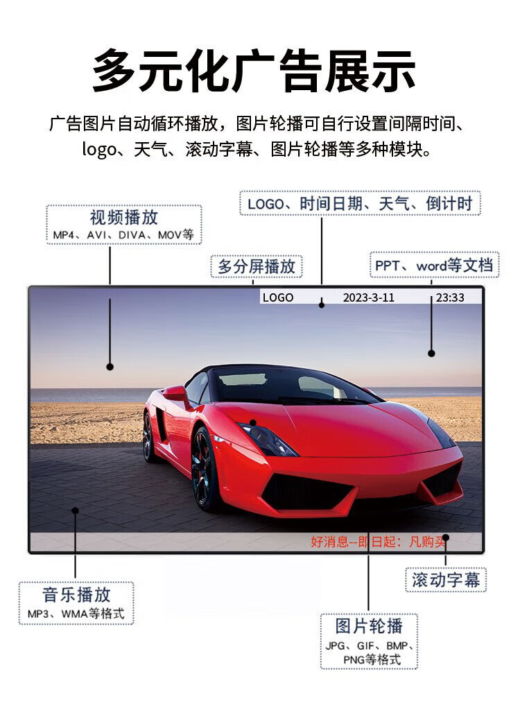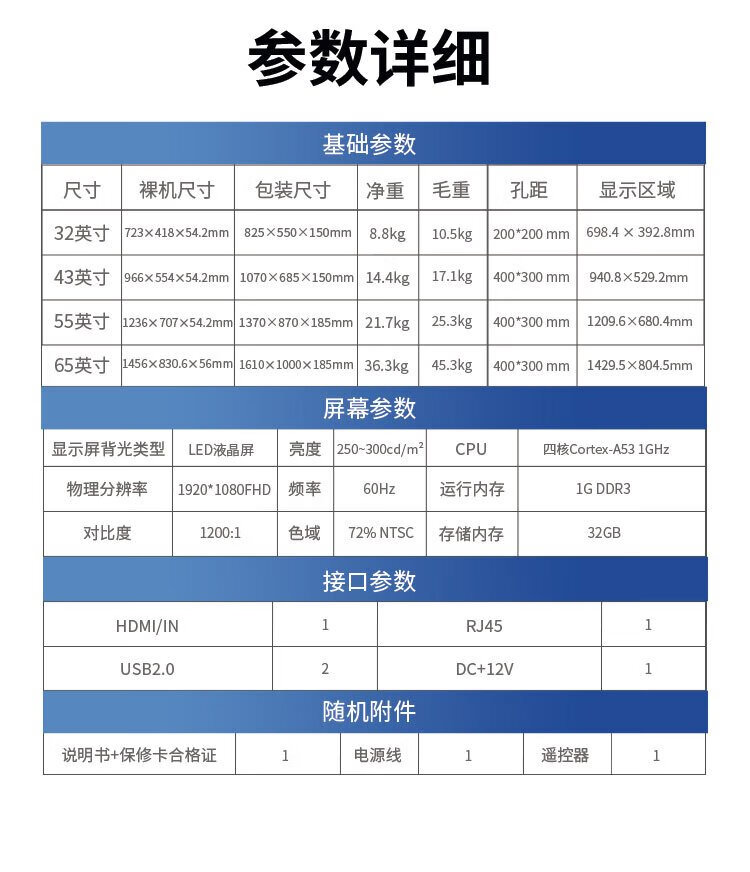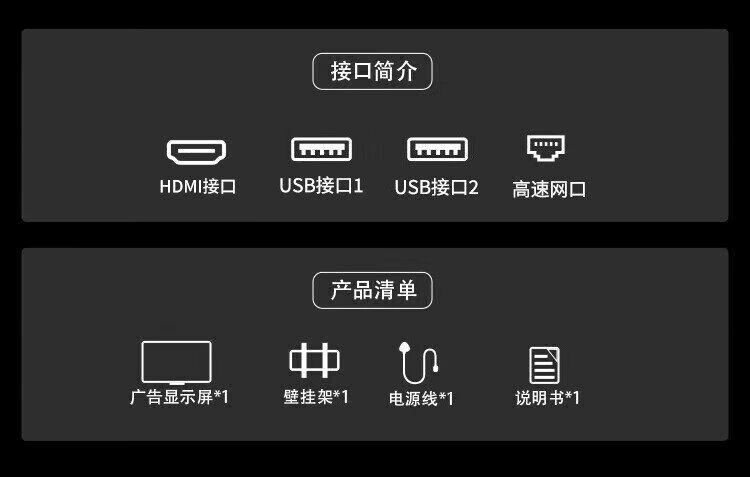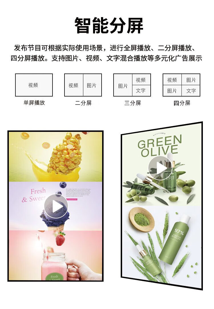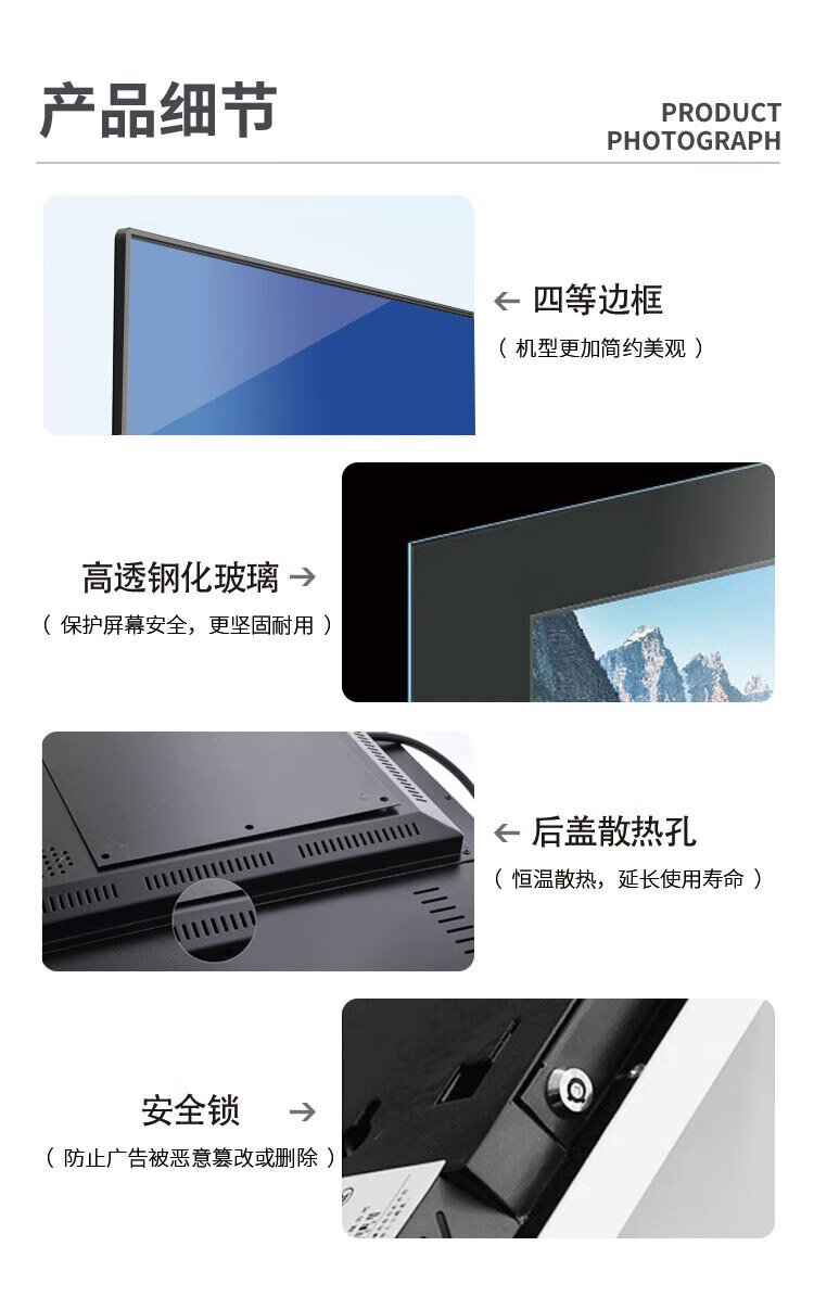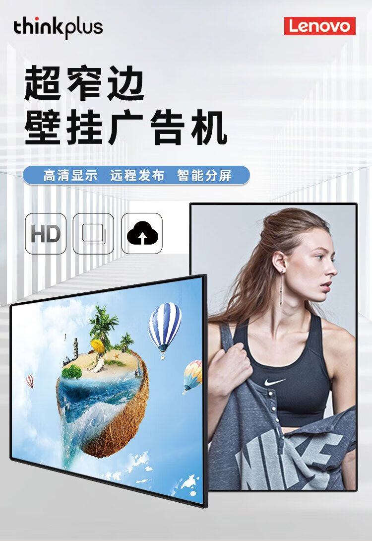 Lenovo 43-inch wall-mounted advertising machine HD display Restaurant electronic screen display Remote playback Split screen carousel Advertising all-in-one DS43