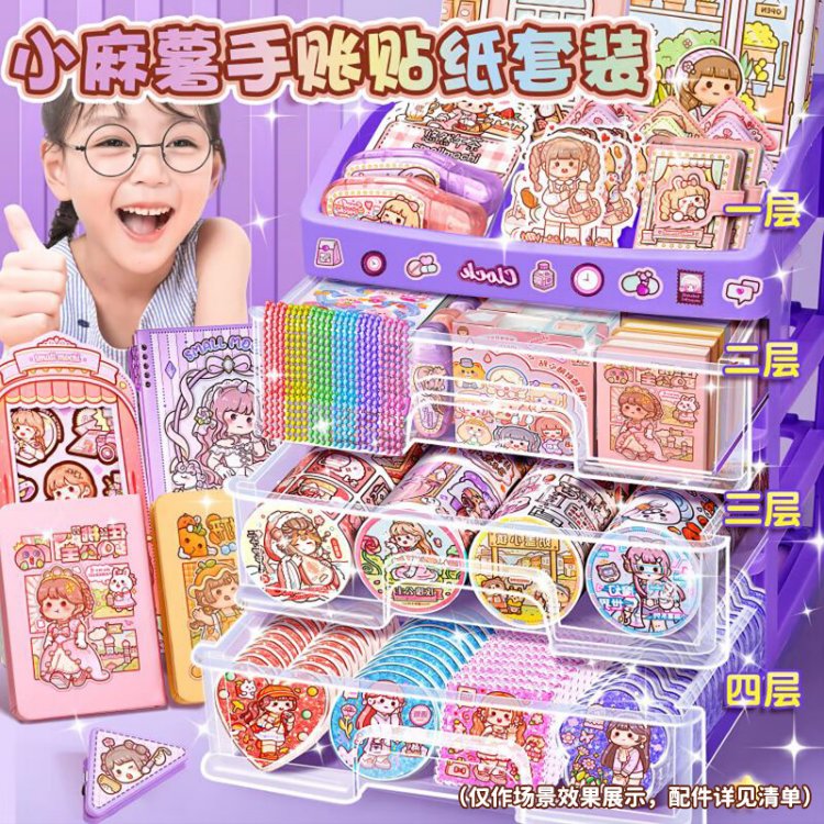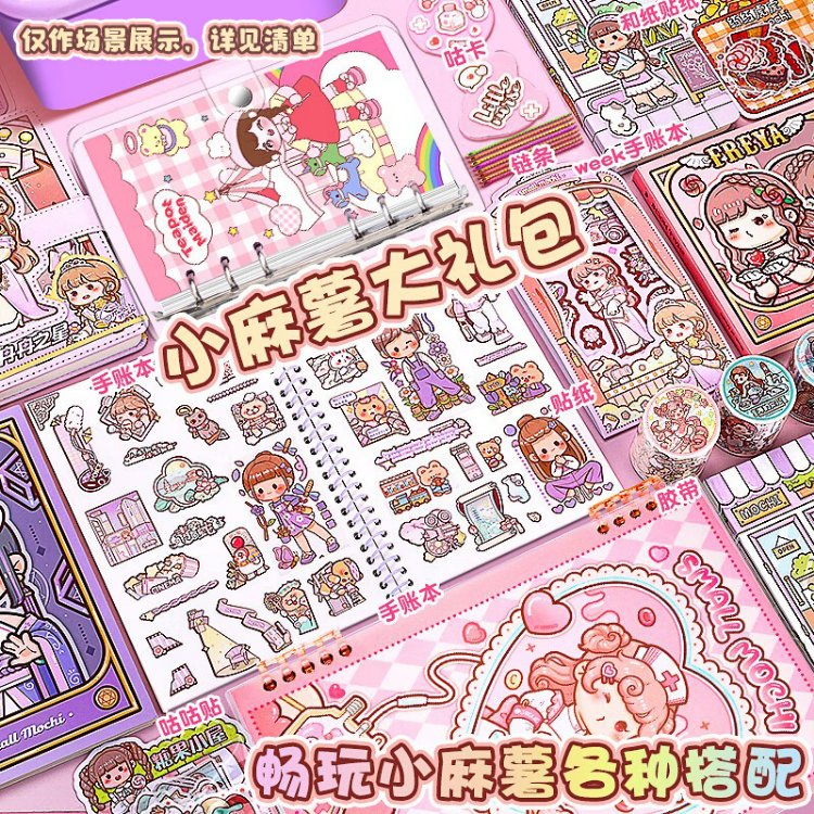 名遇 小麻薯全套手帐礼盒套装十岁女孩生日礼物咕卡贴纸胶带活页手账本玩具六一儿童节大礼包 204件
