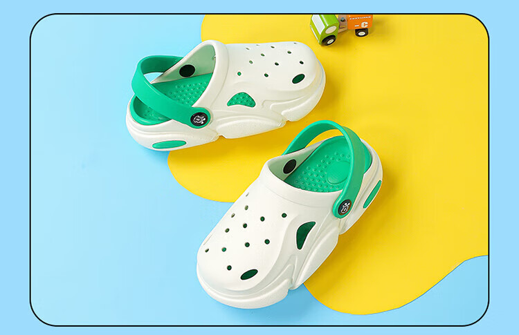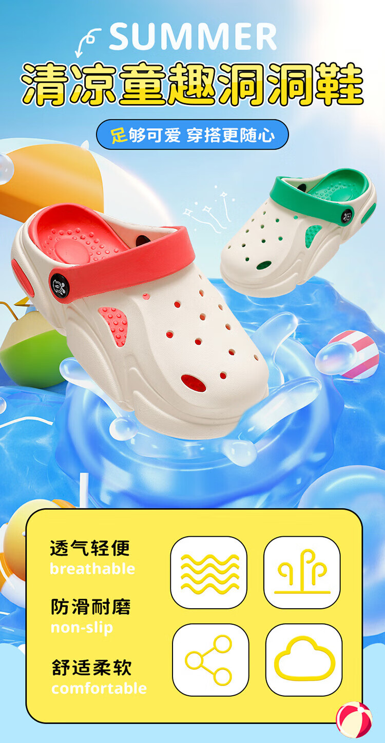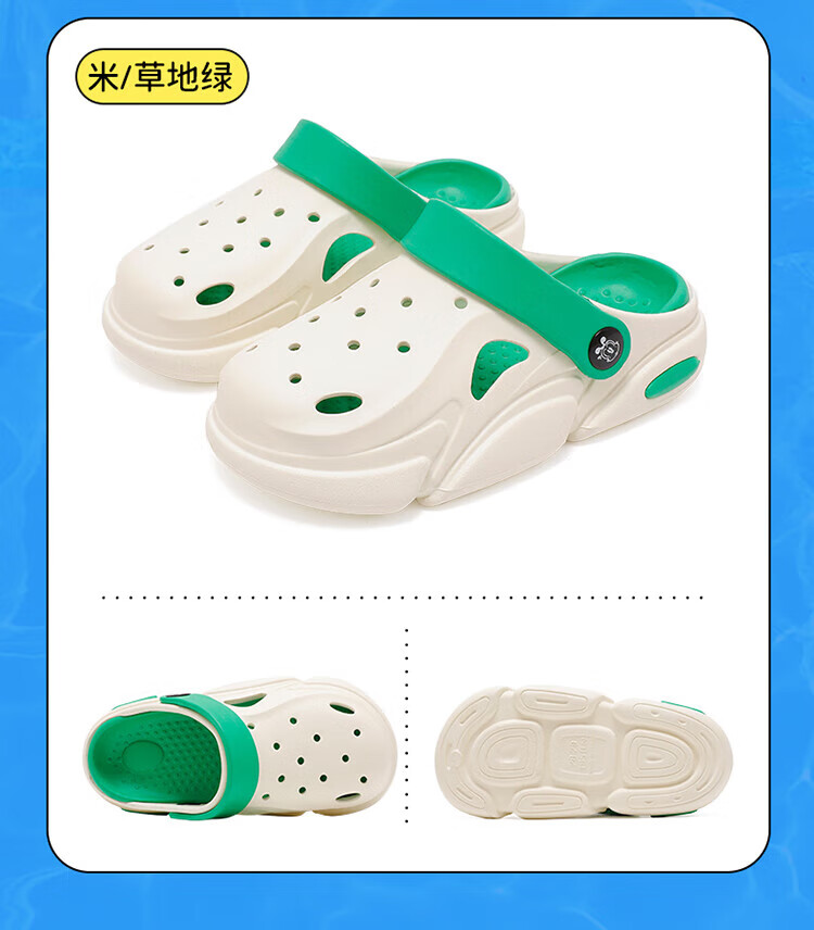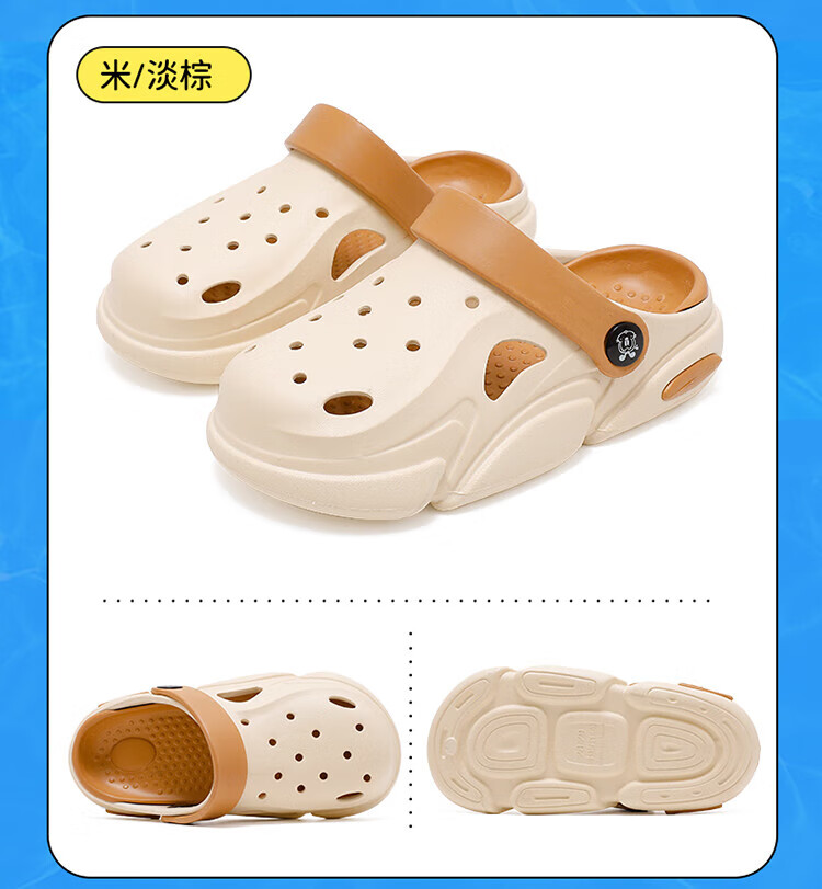 巴布豆童鞋男童夏季软底洞洞鞋儿童拖鞋117542169浅麻灰/水月蓝34-35