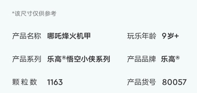 乐高(LEGO)积木拼装悟空小侠80057 哪吒烽火机甲男孩儿童玩具生日礼物